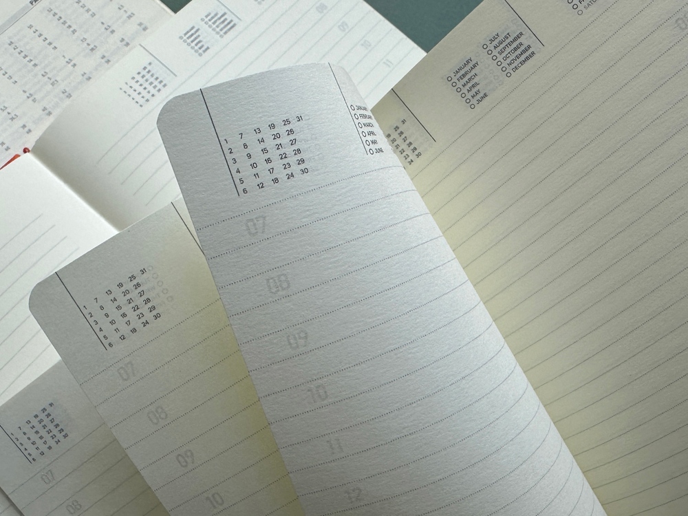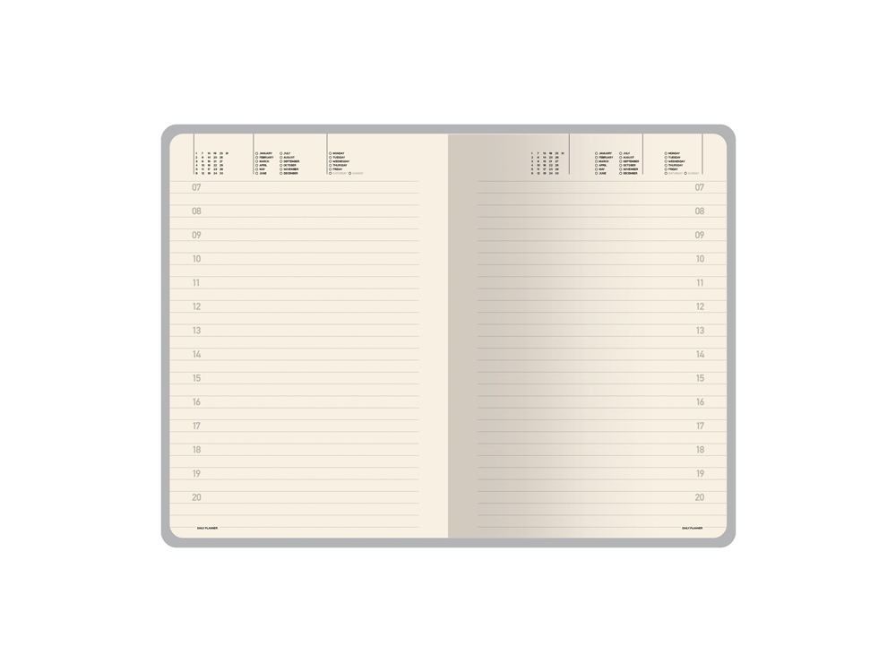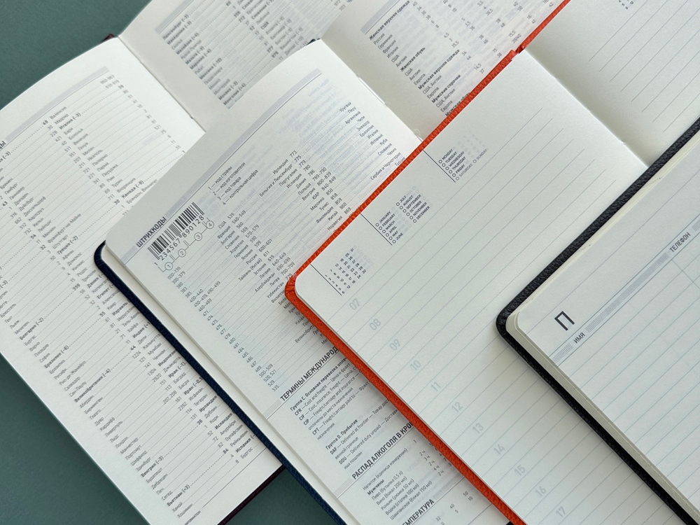 Внутренний блок ежедневника содержит справочную информацию на 19 страницах, телефонную книгу на 26 страницах и блок для ежедневного планирования в линейку с указанием времени суток (интервал в один час). Блок изготовлен из бежевой бумаги плотностью 70 г/кв.м.