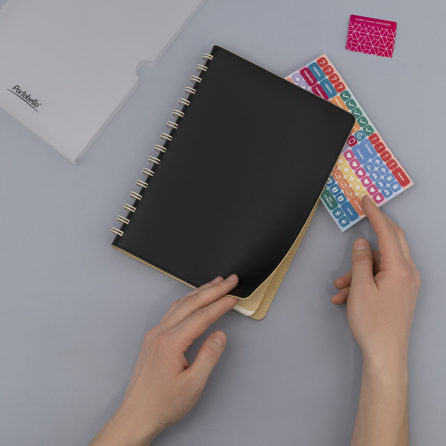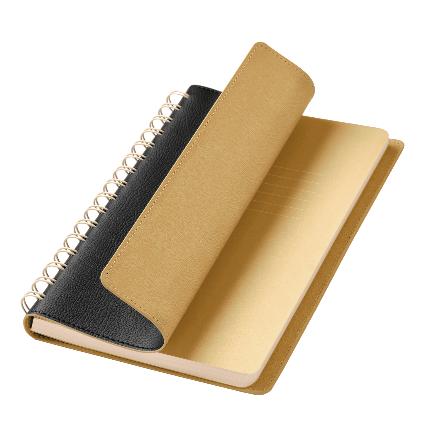 Внутренний блок с кремовыми страницами и срезом гармонично сочетается с нежным оттенком форзаца и нахзаца, повторяющим цвет внутреннего материала обложки. Надежная полускрытая пружина обеспечивает удобство использования и долговечность.