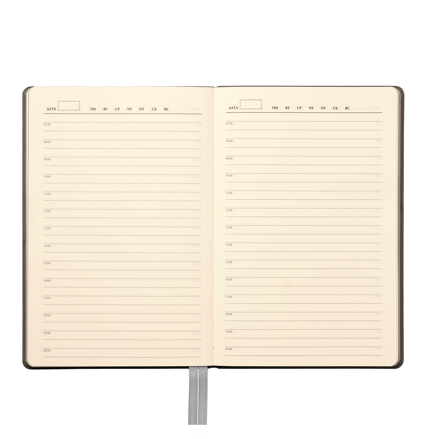Ее уникальная твидовая фактура с мелким рельефным плетением создает изысканный вид. Внутри – кремовые страницы из гладкого, слегка шелковистого офсета, также со скругленными уголками, идеальные для письма. Двойное атласное ляссе поможет легко ориентироваться в записях.