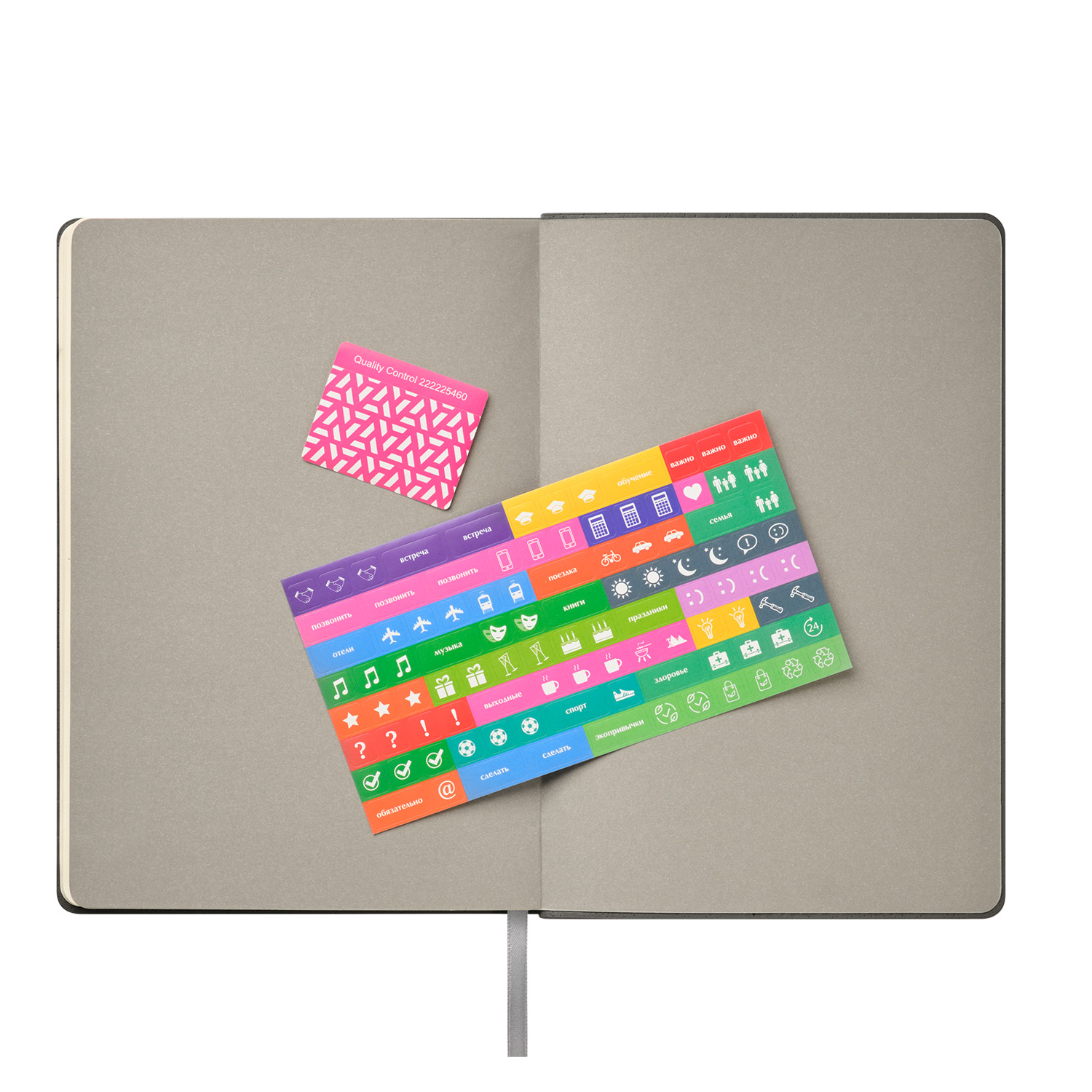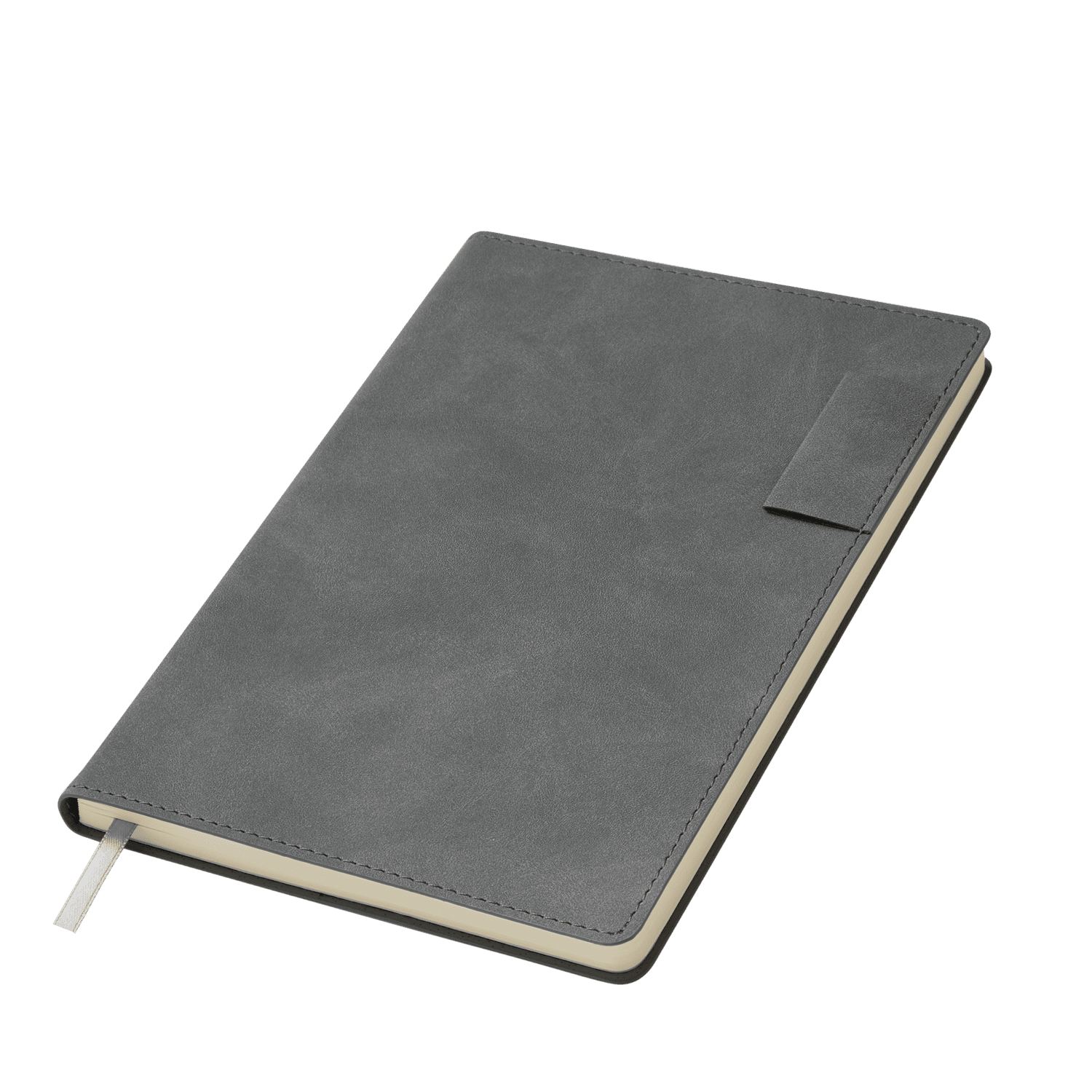 Мягкий на ощупь материал с мелкими вкраплениями имитирует натуральную замшу, а петелька для ручки добавляет практичности. Сдержанные оттенки обложки, форзаца и нахзаца гармонично сочетаются между собой.