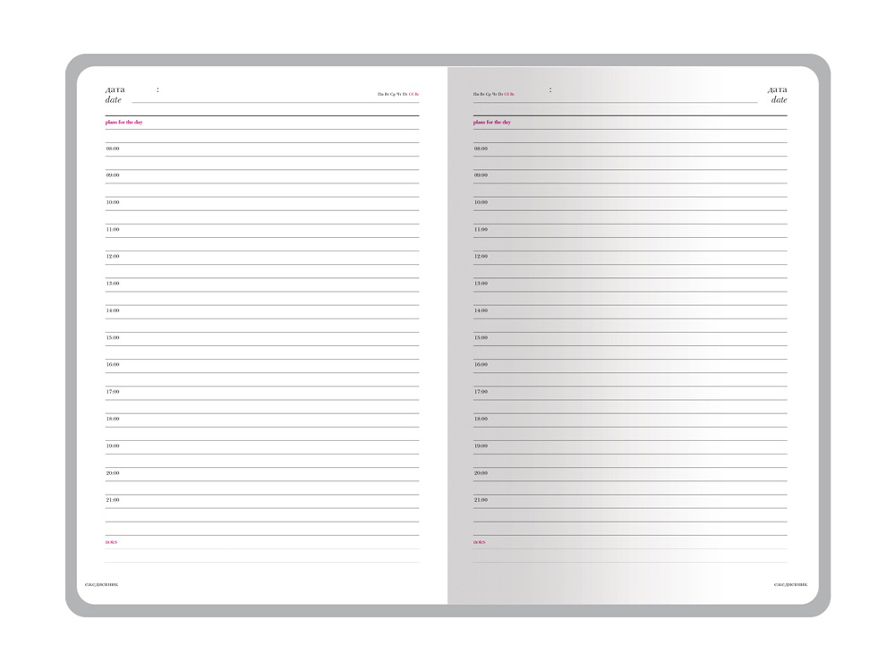 • для планирования с линовкой и указанием времени с интервалом в один час;