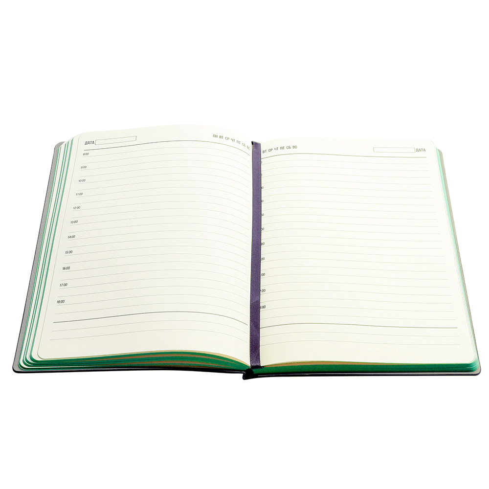 Мягкий переплёт из искусственной кожи с ярким, контрастным форзацем и нахзацем привлекает взгляд и поднимает настроение. Бумага в блоке выполнена в нежных оттенках слоновой кости, создавая ощущение роскоши и уюта.