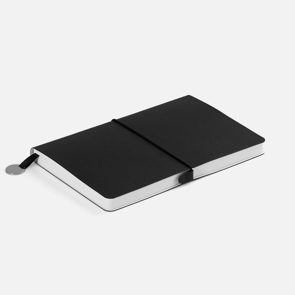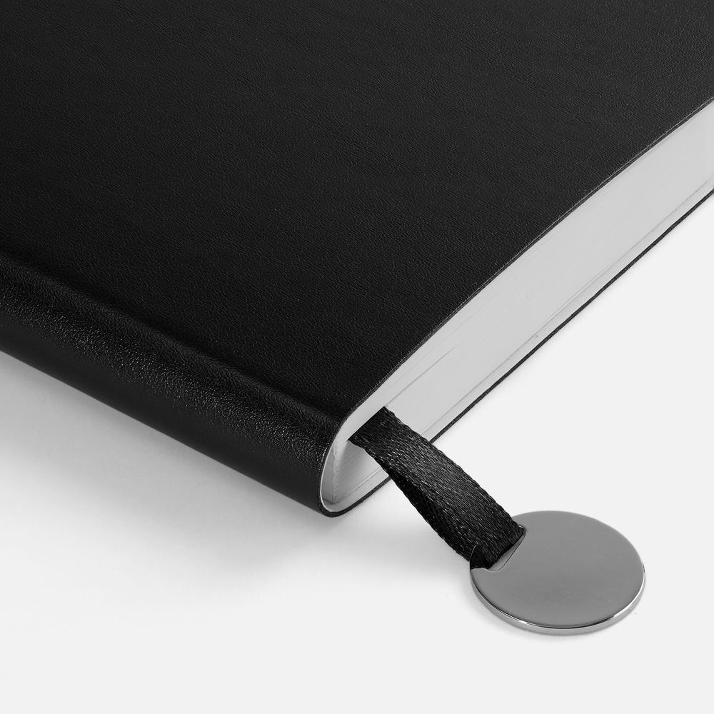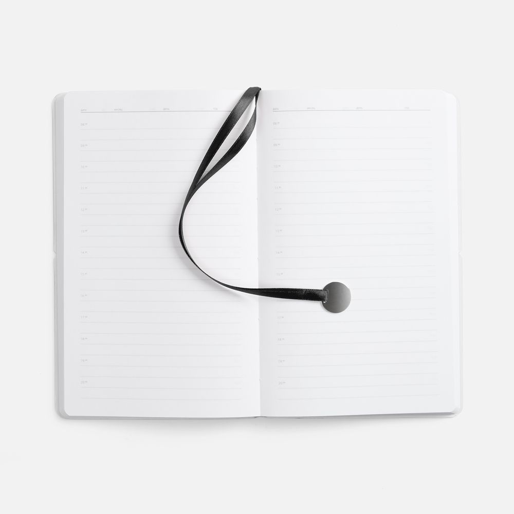 Ежедневник с гибкой обложкой, выполнен из материала Waltz, белый BB, дополнен ляссе в цвет обложки с металлическим шильдом.