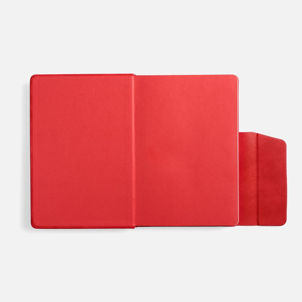 Ежедневник с твердой обложкой и фигурным магнитным клапаном, дополнен капталом и двойным ляссе.