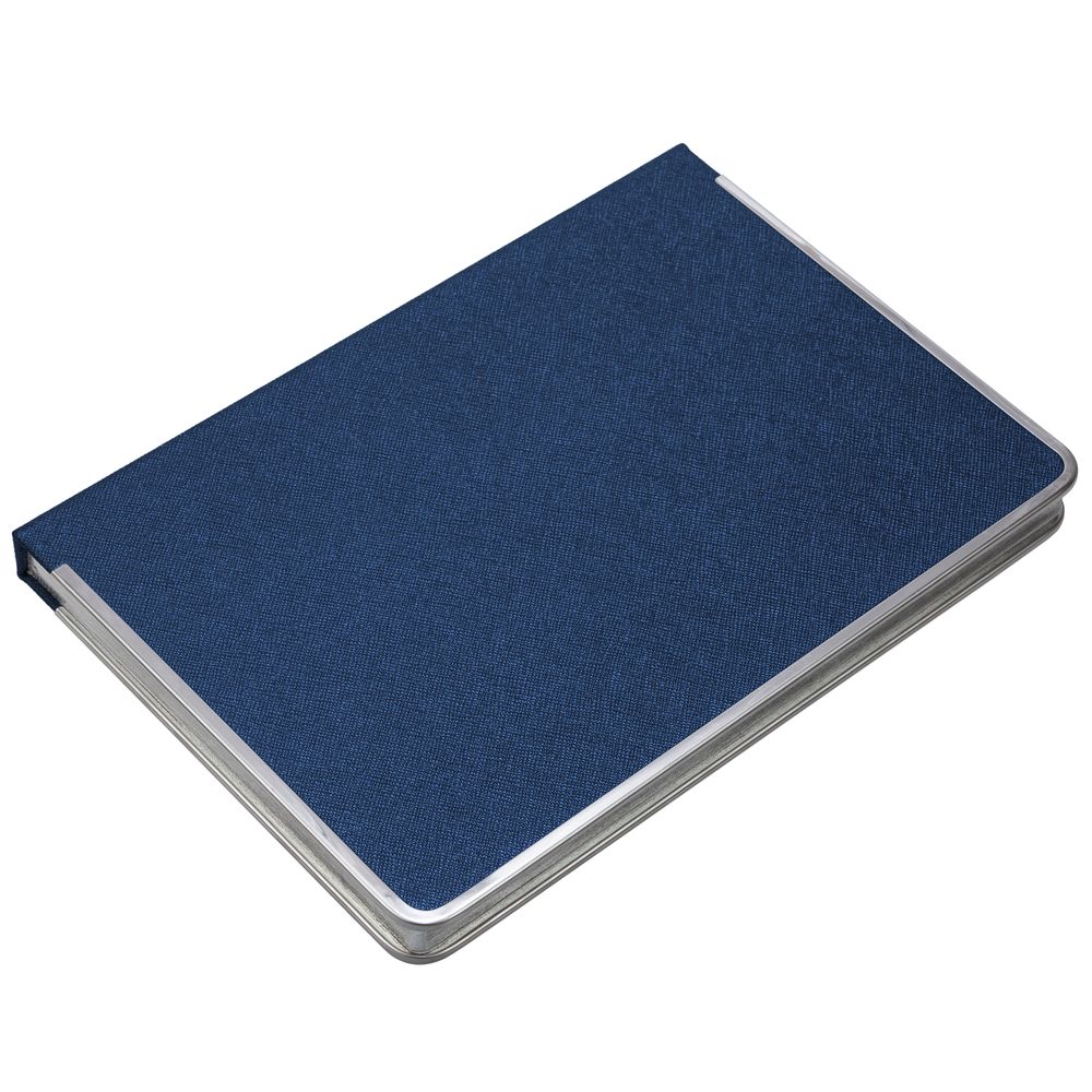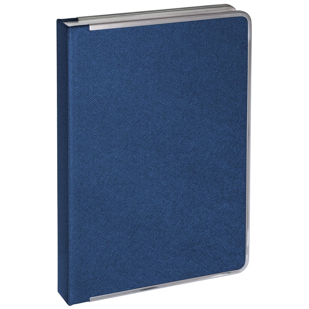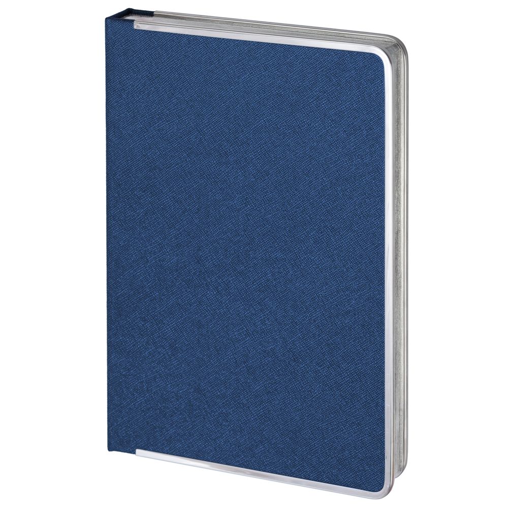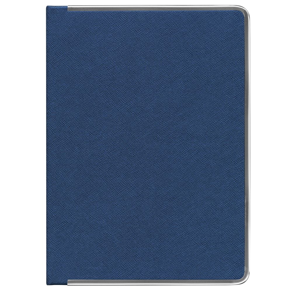Ежедневник с твердой обложкой и серебристым обрезом, выполнен из материала Saffian, темно-серый, дополнен серым ляссе и металлическими рамками.