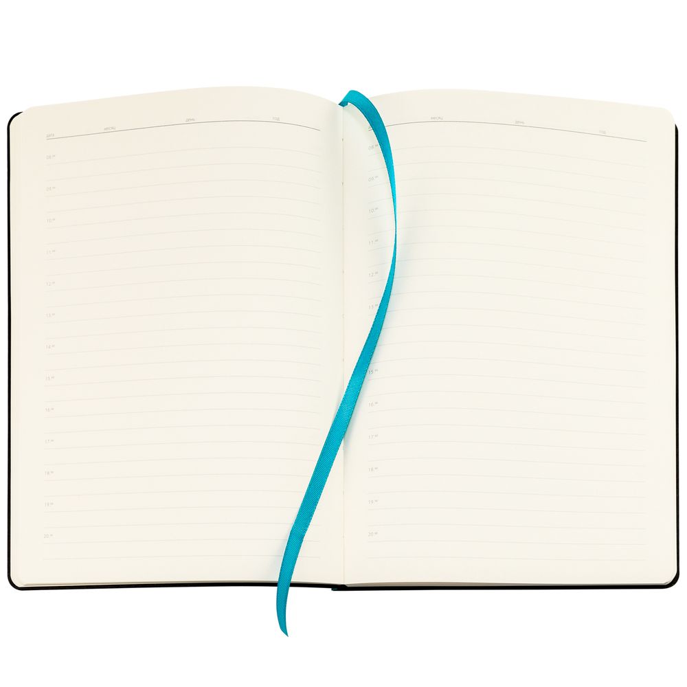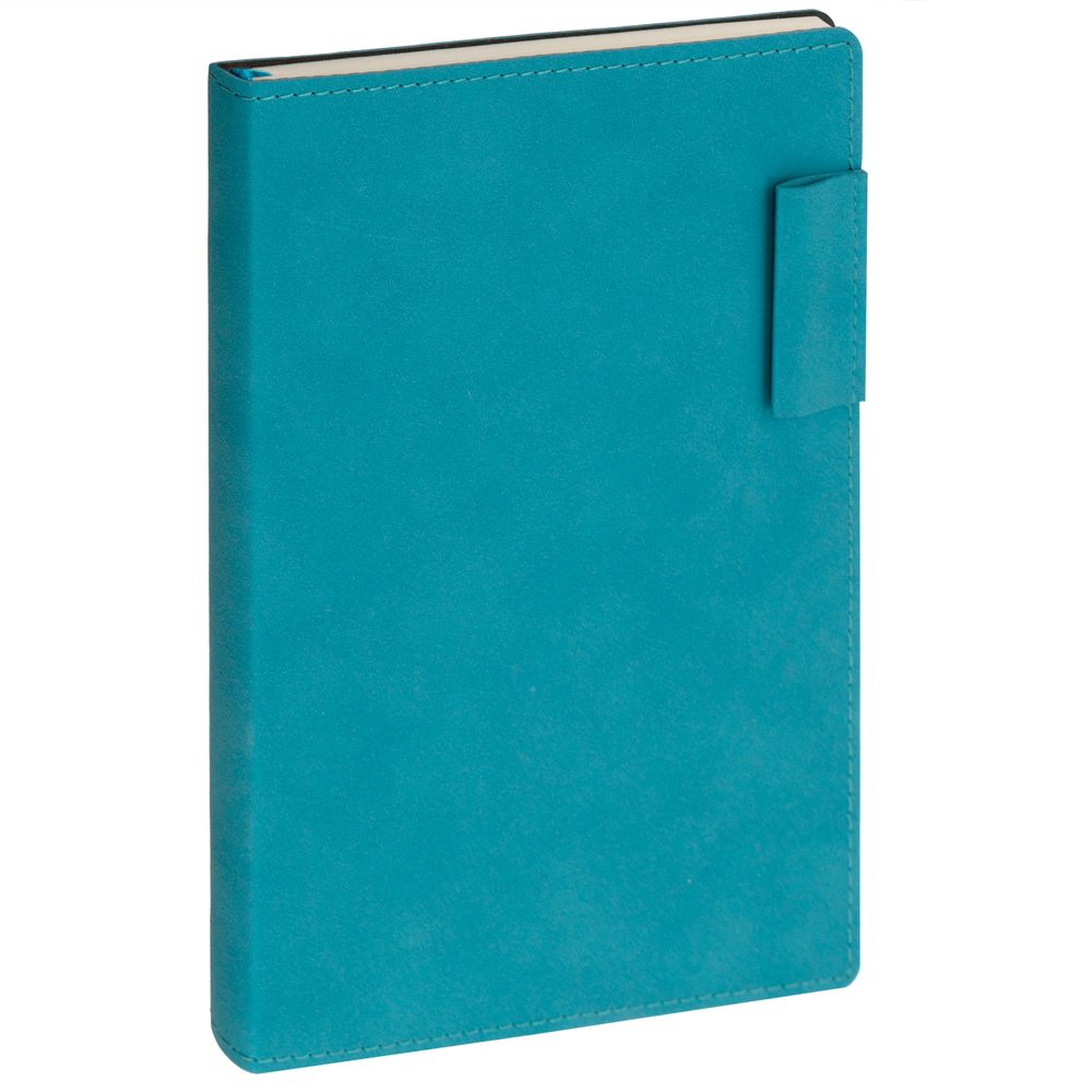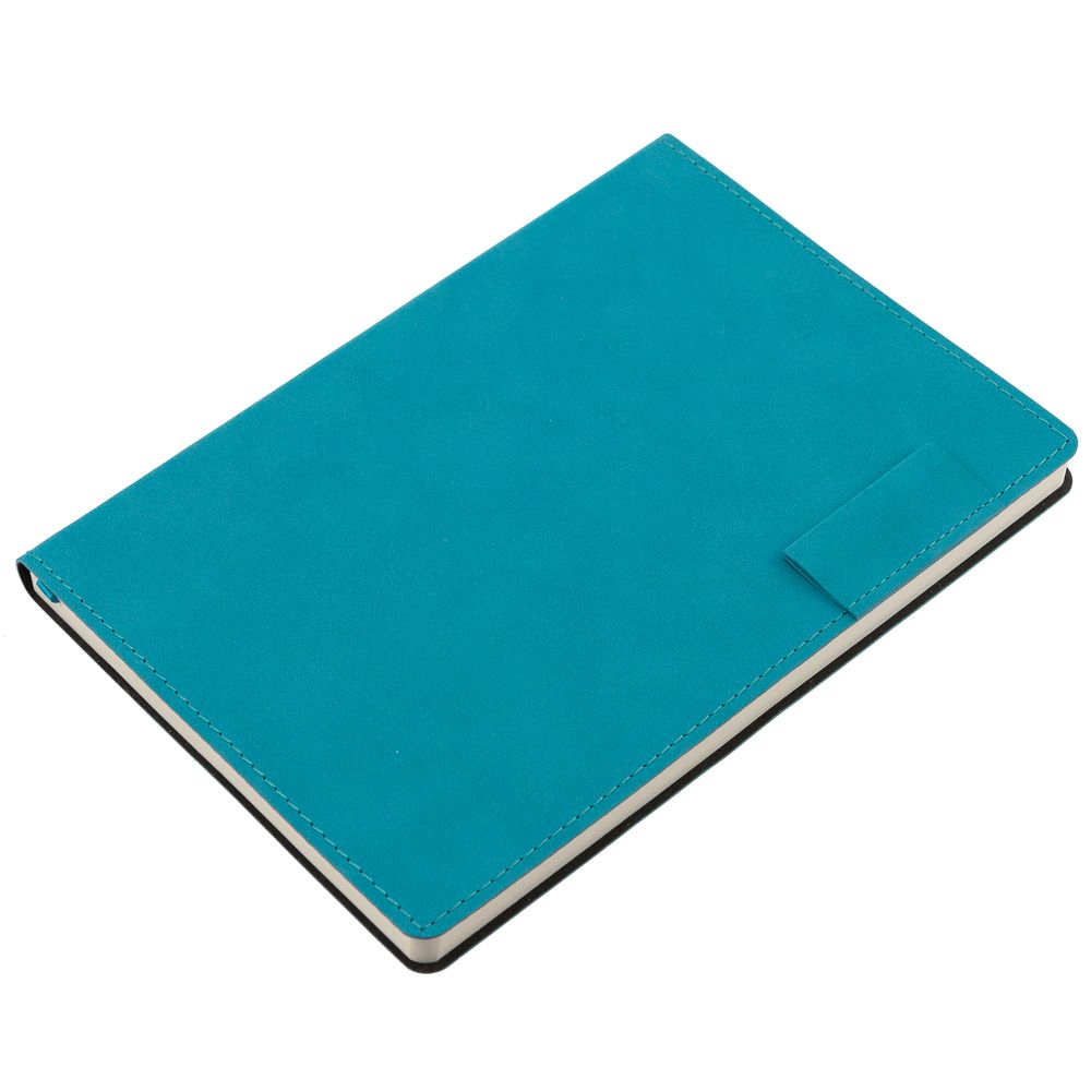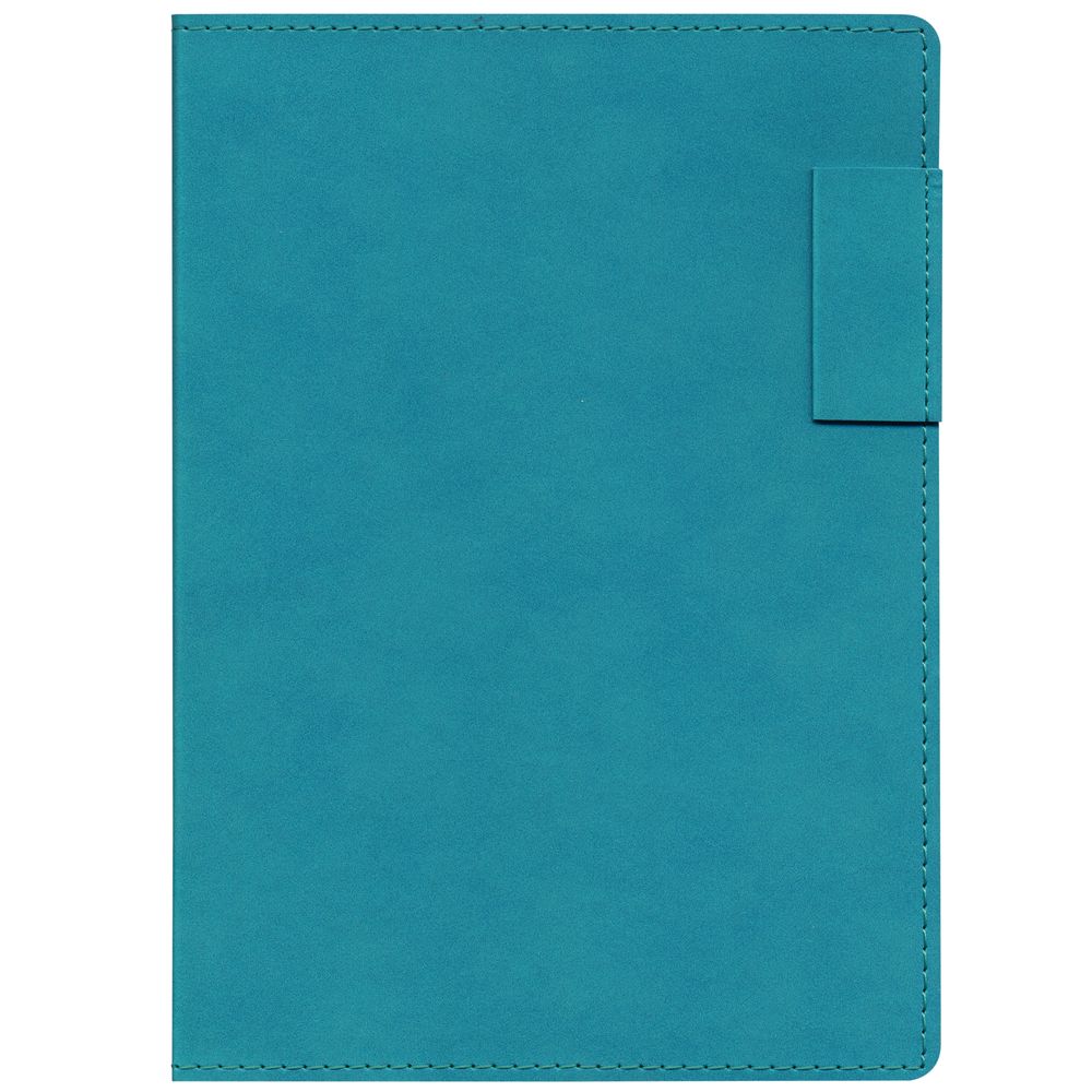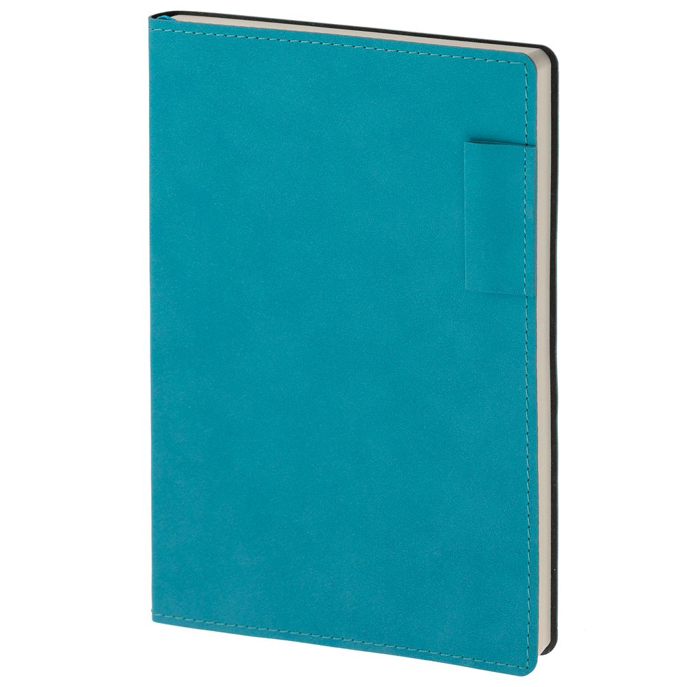 Ежедневник с гибкой обложкой, выполнен из материала Nubuck, цвет морской волны II, дополнен петлей-лейблом для ручки и ляссе в цвет материала.