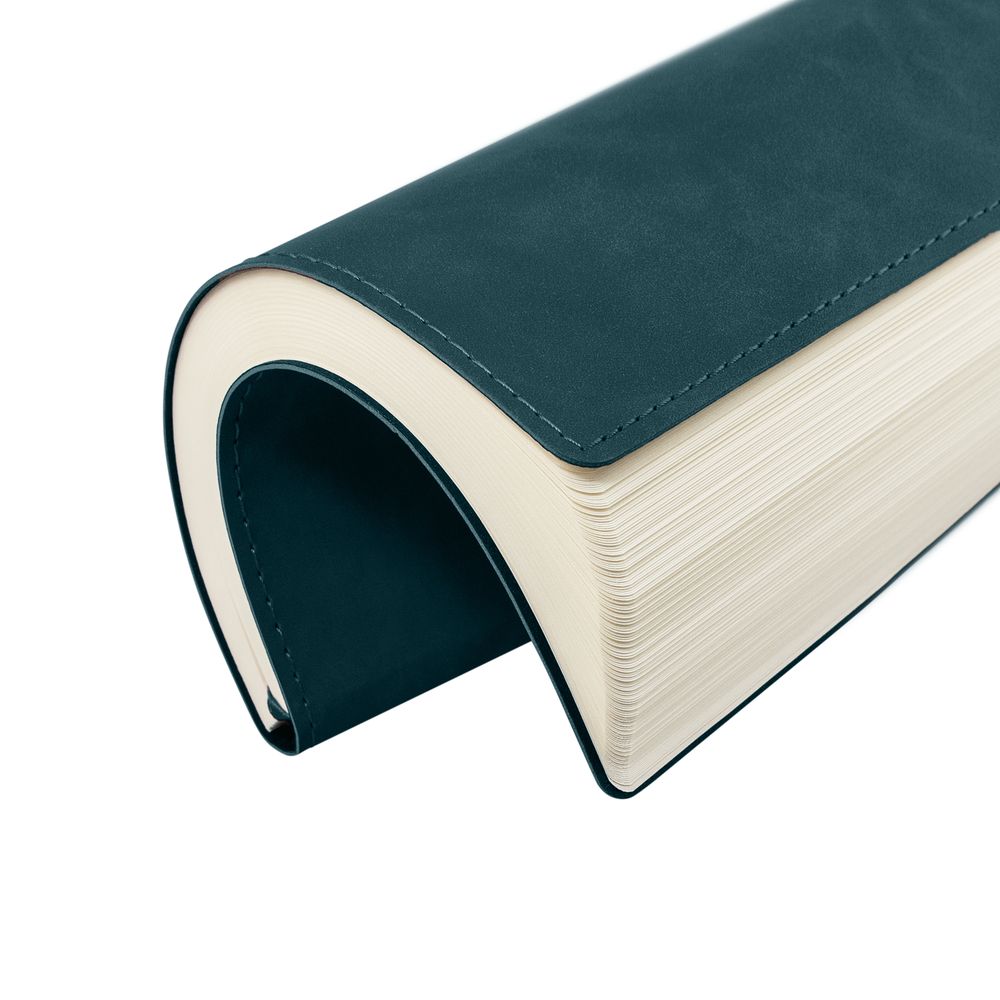 Ежедневник 17х24 см, с гибкой обложкой, выполнен из материала Nubuck Touch, темно-серый ЕЕ, дополнен петлей-лейблом для ручки и двойным ляссе в цвет материала.