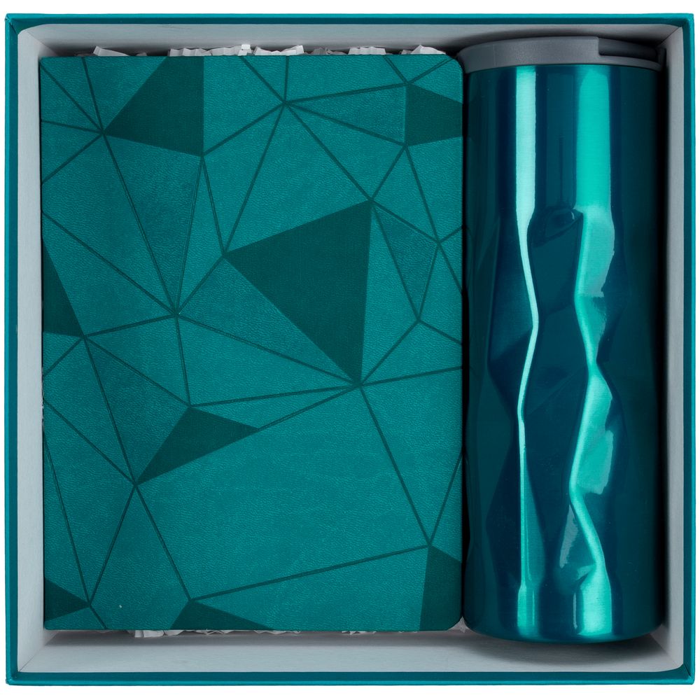 Узнаваемый паттерн на ежедневнике делает его еще более притягательным, а термос благодаря своей форме становится более объемным: его особенно приятно держать в руке и любоваться игрой света, преломляющегося в гранях изделия.