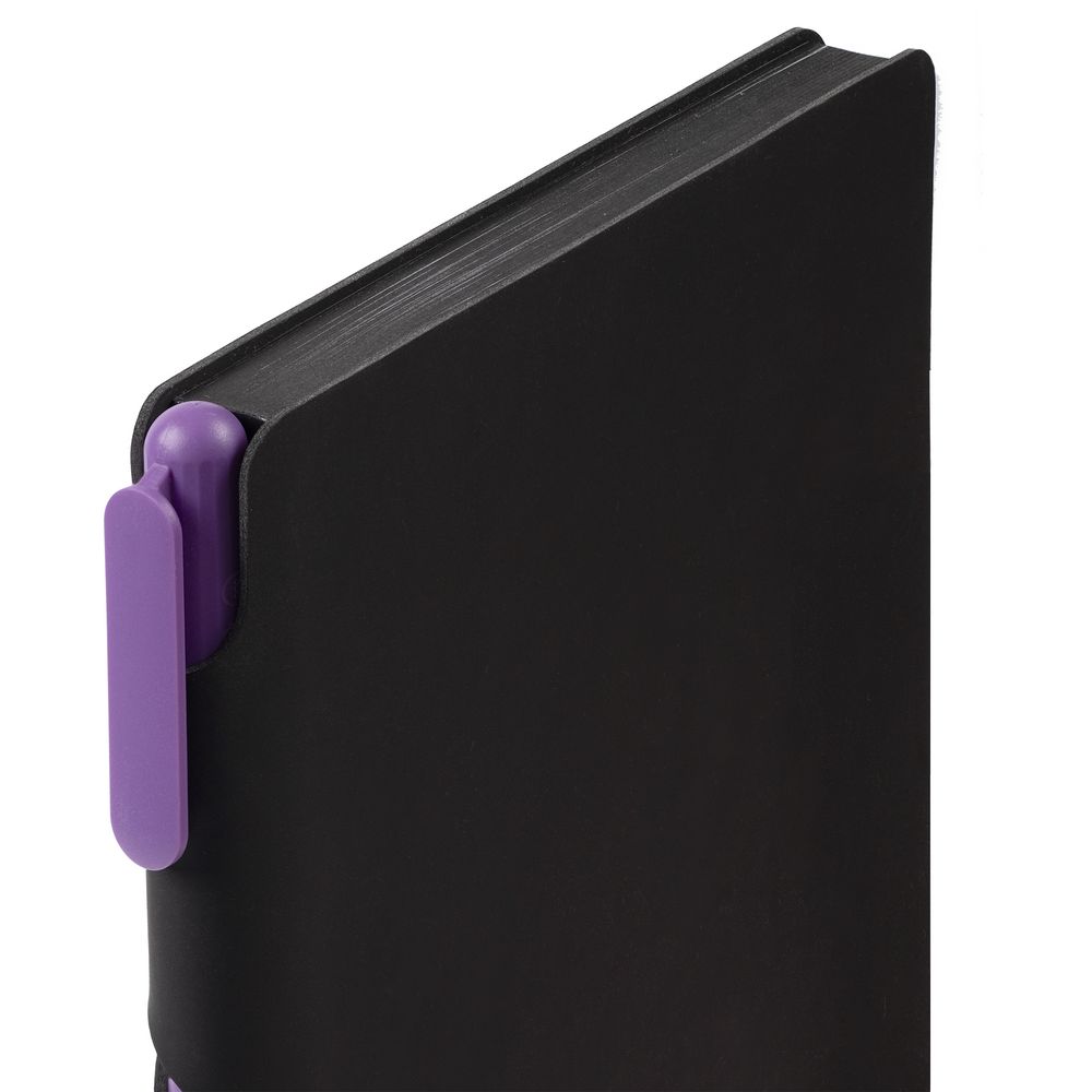 Удобный ежедневник с гибкой обложкой и местом под ручку в корешке, миниатюрная ручка из переработанного пластика и компактная самосборная коробка — простые составляющие полезного делового набора.