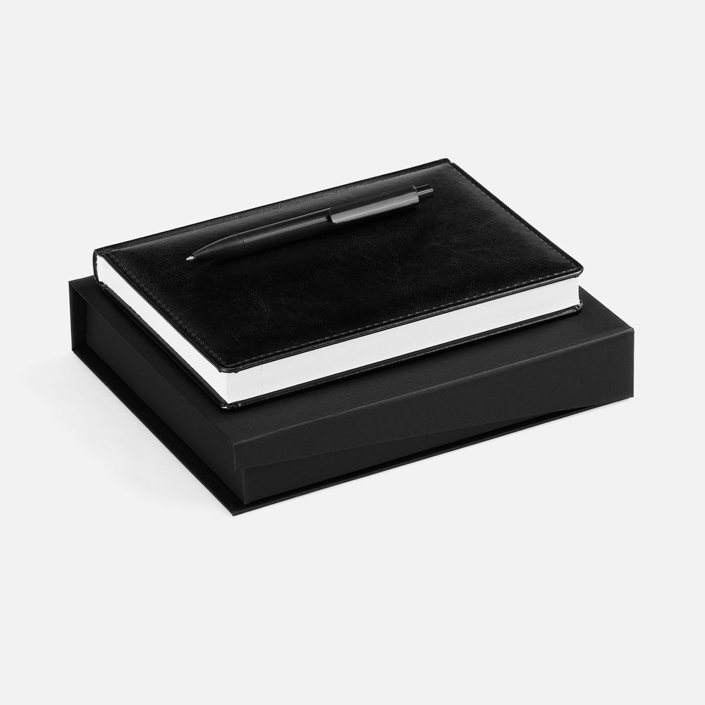Две самые классические модели в одном деловом наборе: ежедневник Nebraska с «пухлой» обложкой и ручка Raja — кажется, они никогда не выйдут из моды.