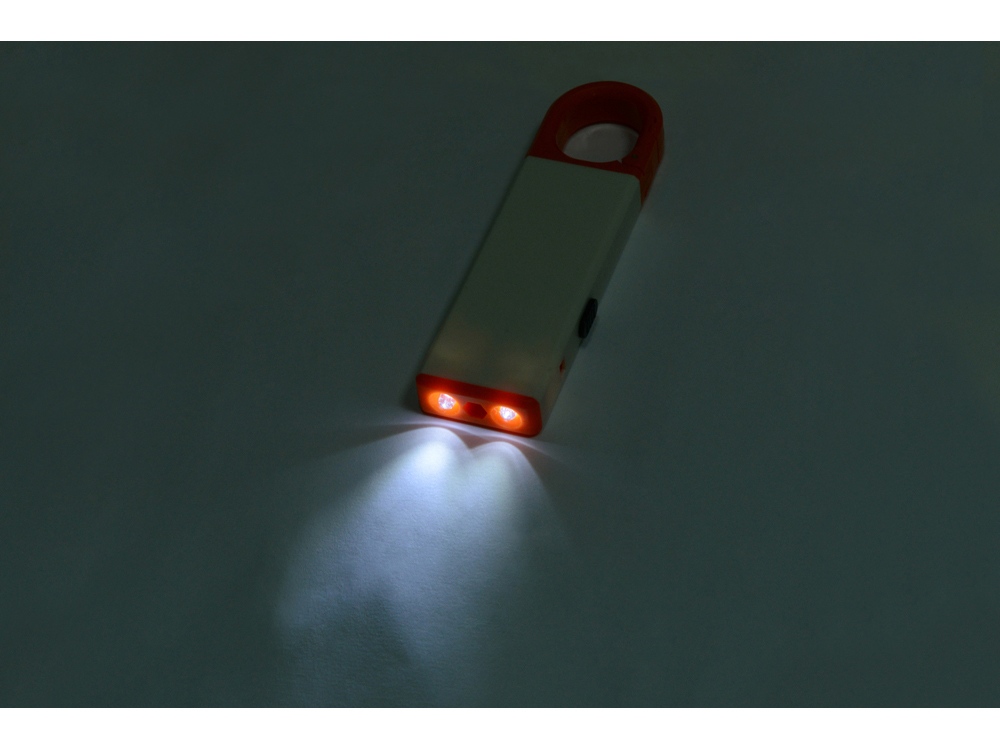 Компактный и удобный светодиодный фонарик скрывает под корпусом небольшой набор инструментов. Фонарик можно прикрепить к ключам при помощи специальной застежки. На поверхность корпуса можно разместить логотип.
