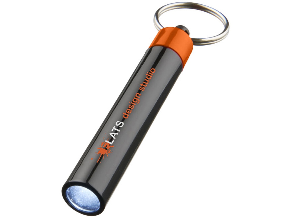 Брелок-фонарик Retro. Покрытие УФ, фонарик с одним диодом с нажимной кнопкой вкл/выкл. Металлическое колечко. Батарейки в комплекте. АБС пластик.