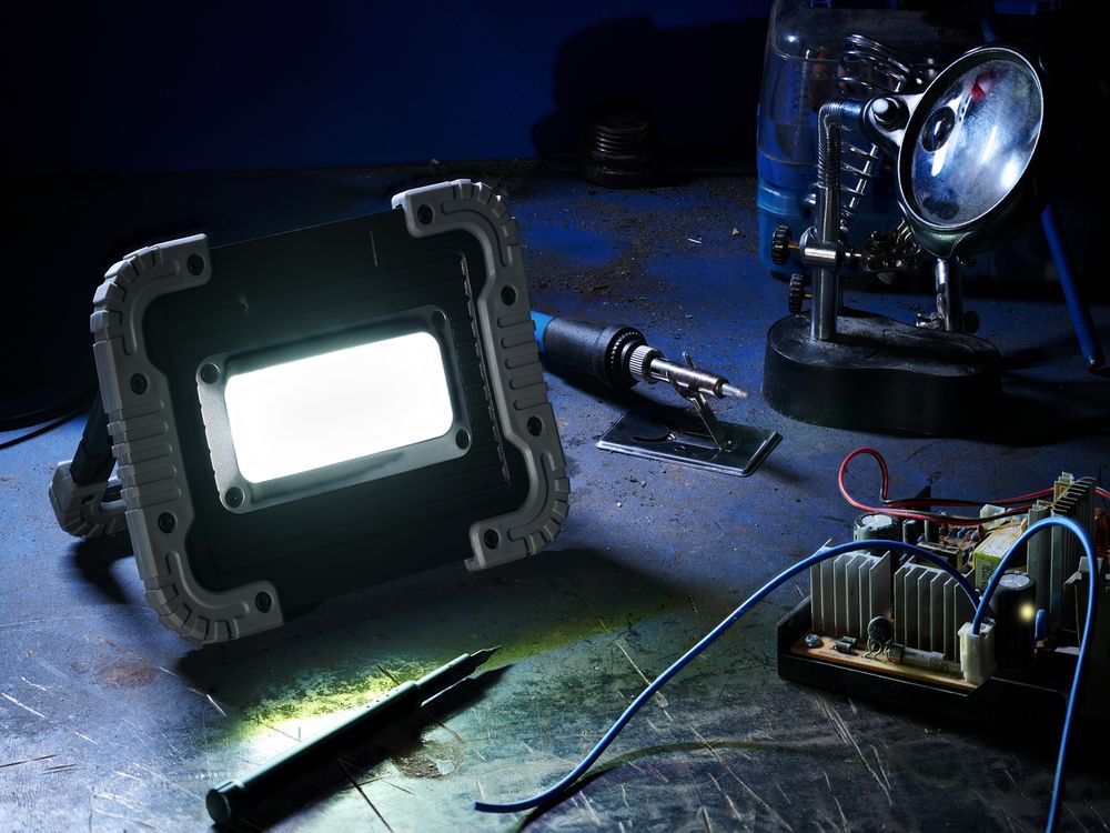 Мощный аккумуляторный фонарь для кемпинга, дачных выездов и строительных работ. Вращающаяся на 180° ручка позволяет зафиксировать фонарь в нужном положении. Встроенный аккумулятор имеет выход USB, который позволяет использовать фонарь в качестве источника питания для зарядки телефона.