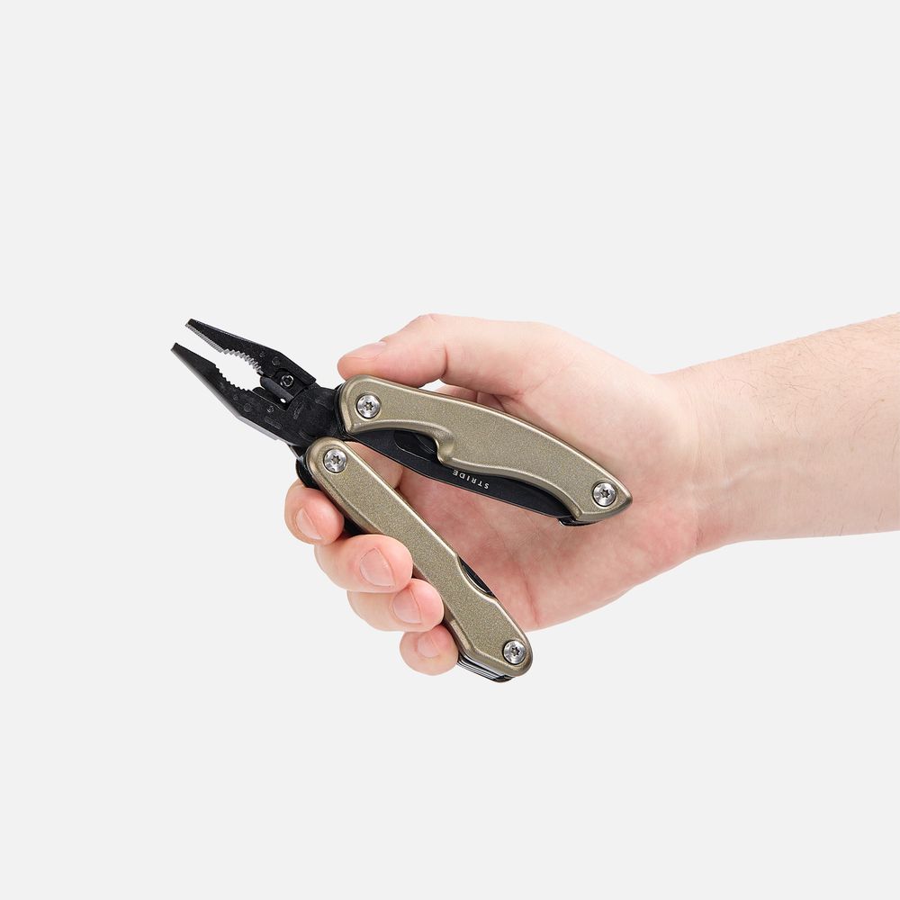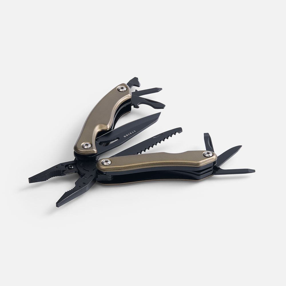 Компактный многофункциональный инструмент изготовлен из высококачественной инструментальной нержавеющей стали.
