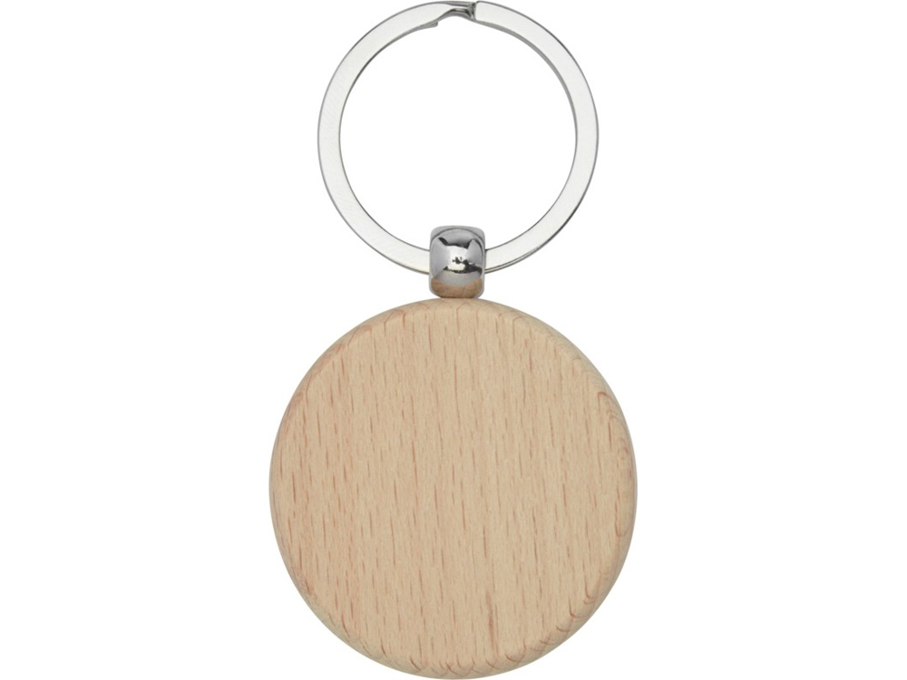 Круглый брелок из буковой древесины. Поставляется в коричневой упаковке из шрифтовой бумаги.