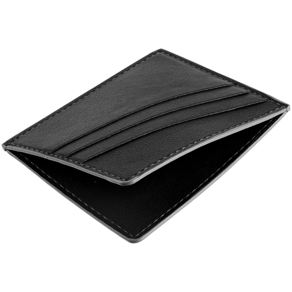 Чехол выполнен из материала Petrus, серый СС, дополнен окрашенным срезом края и внутренним карманом из серого картона. Имеет 4 отделения для кредитных карт и 1 отделение для купюр.