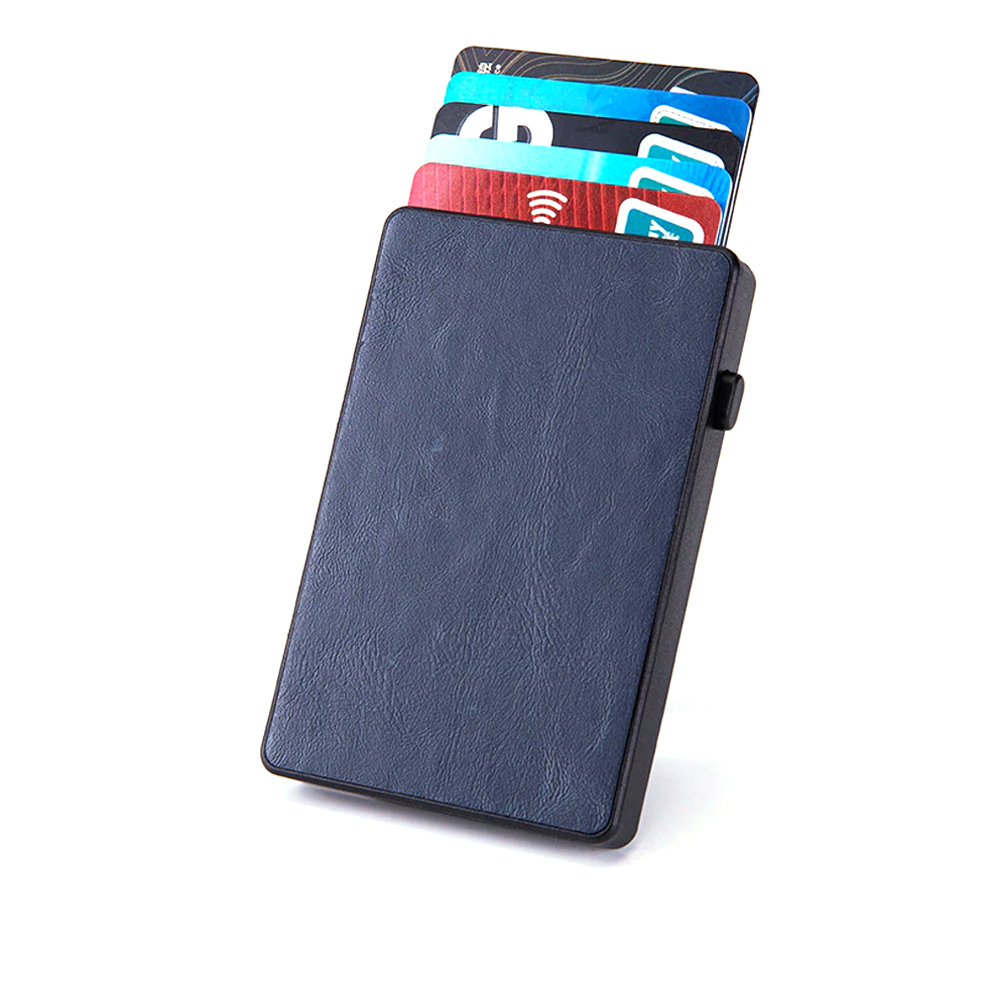 Современный практичный способ хранить и использовать банковские карты – держатель Amir с приятным покрытием из искусственной кожи. Бокова кнопка позволяет легко извлекать карты из бокса с защитным покрытием против копирования данных.