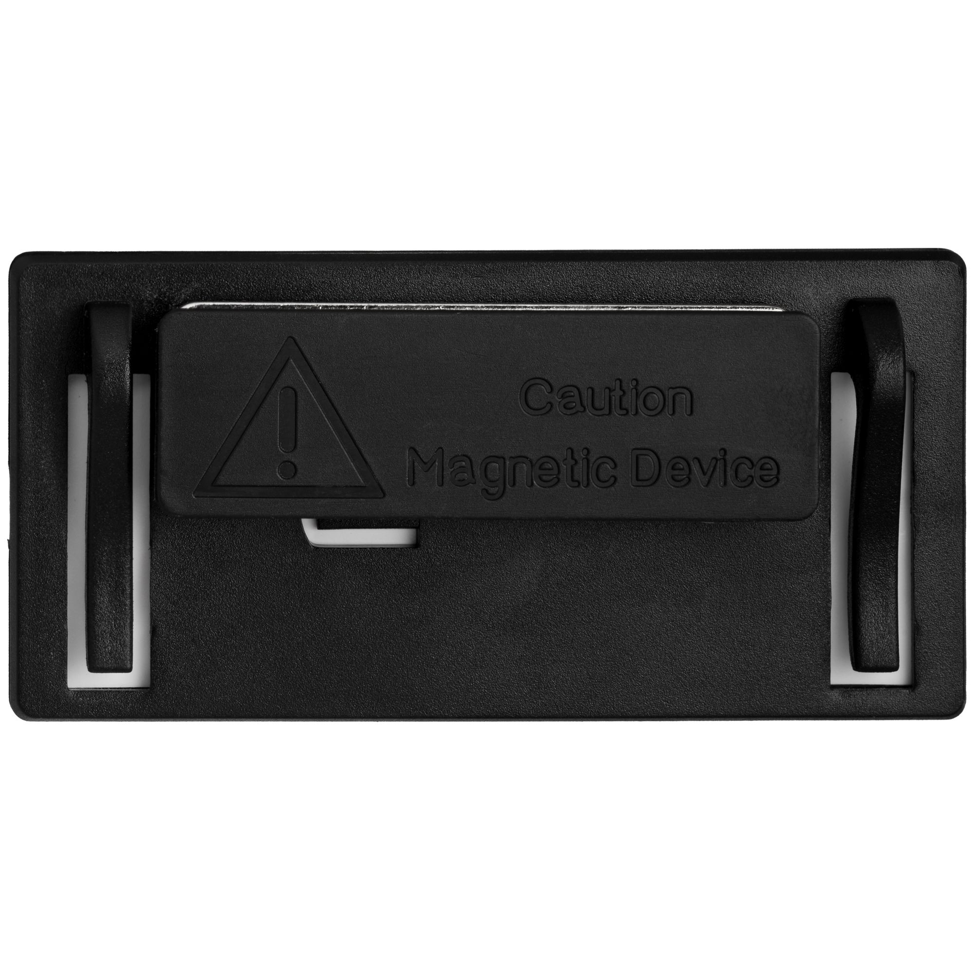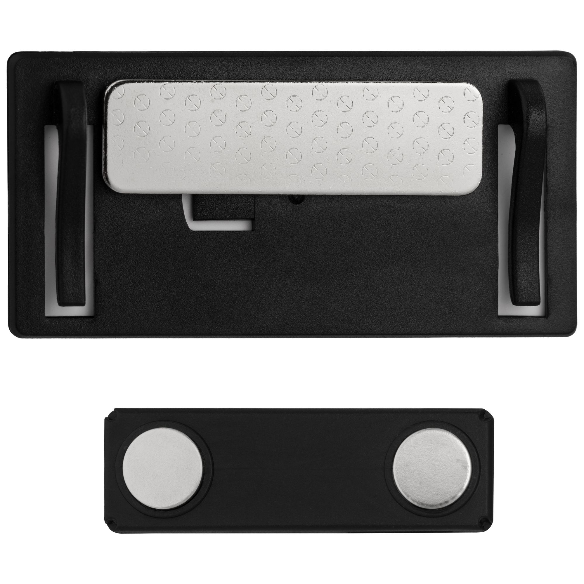 Крепится с помощью магнита и не портит одежду. Также можно легко закрепить конструкцию на кармане пиджака или рубашки с помощью зажимов на задней поверхности.