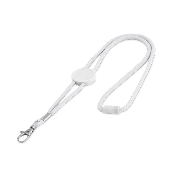 Лента для бейджа из полиэстера, регулируемая, с металлическим карабином и местом для нанесения объемной наклейки. ø5 x 450 мм. Замок безопасности.