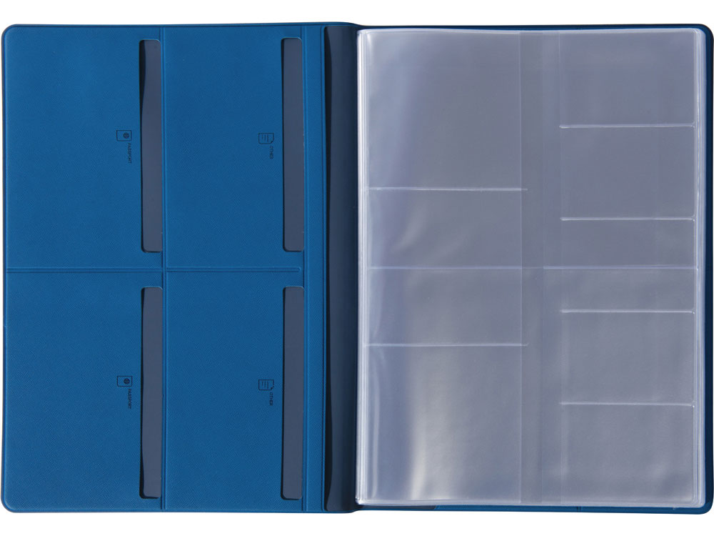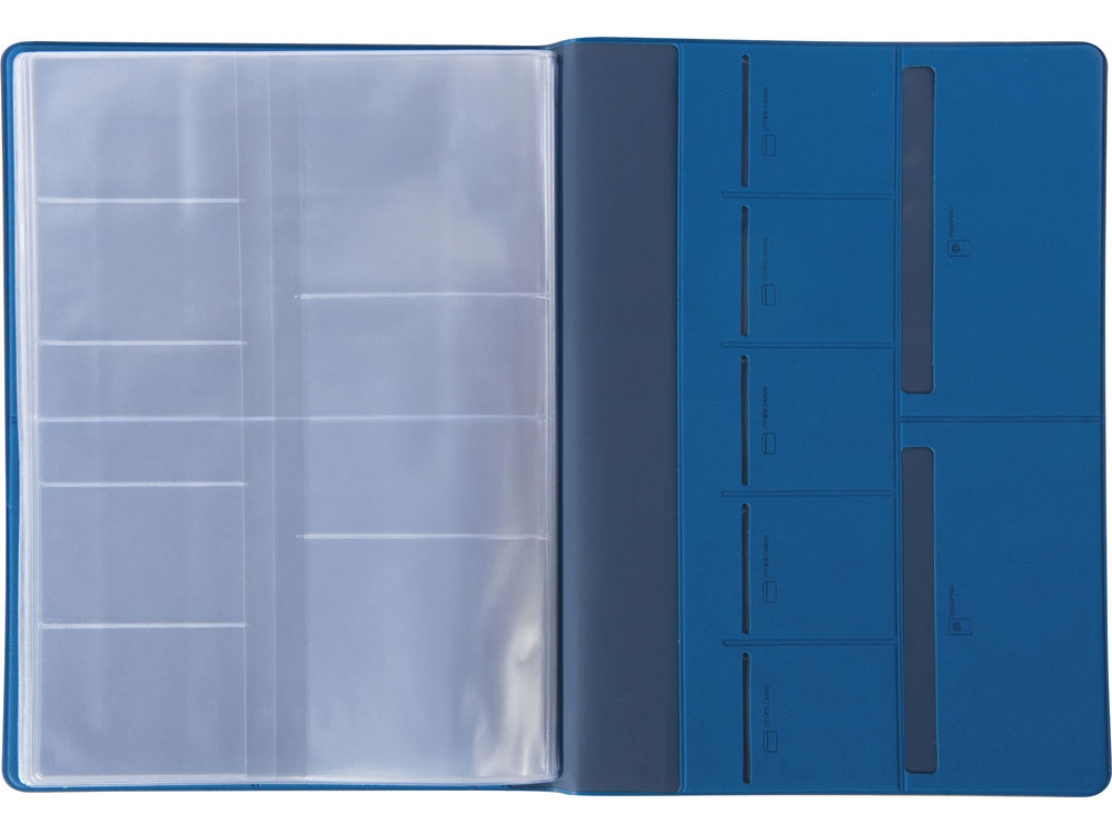 - 6 горизонтальных кармана 10 х 14 см с подписями и иконками, уточняющими тип документа, который можно поместить внутрь