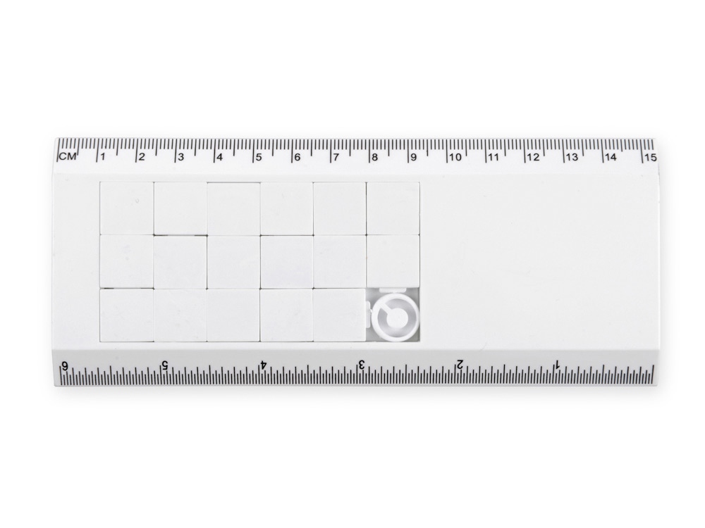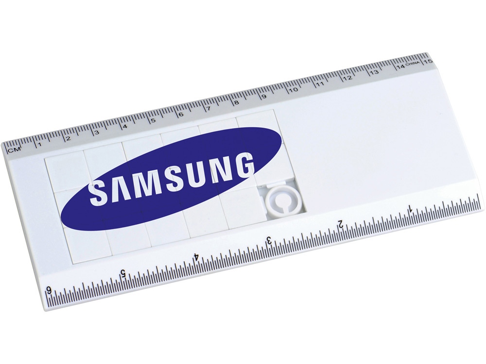 Кто сказал, что логику и мелкую моторику можно развивать только детям? Пару-тройку минут свободного времени в офисе можно посвятить знакомой всем с детства забаве – игре в пятнашки. Игра расположена на линейке, так что это еще и нужная канцелярская принадлежность. Цвета в ассортименте.
