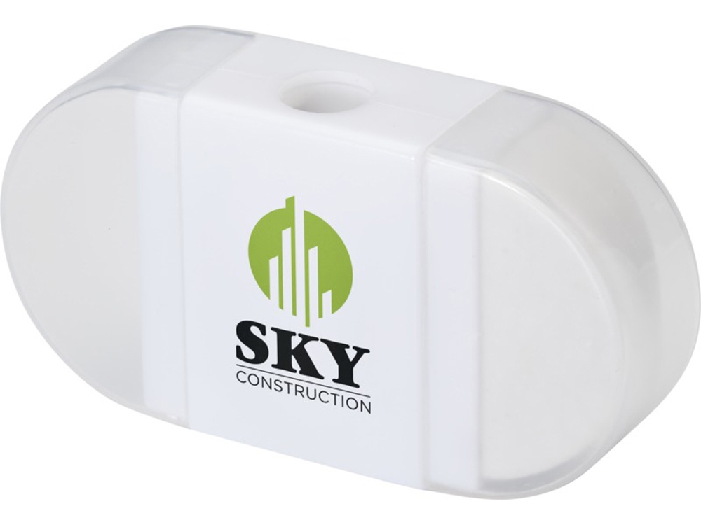 Точилка для карандашей с ластиком и прозрачными колпачками с обеих сторон. Размер: 6,2 x 3,3 x 1,6 см. Пластик ABS, Пластик TPR.