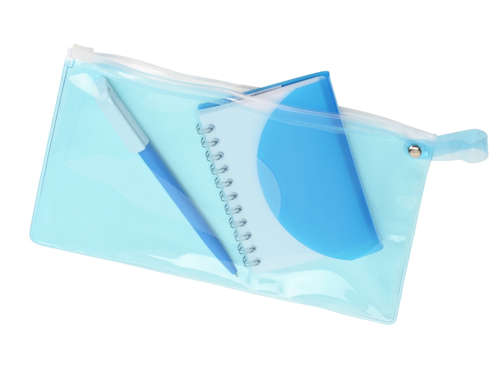 блокнот- полипропилен, ручка- пластик, пенал- ПВХ