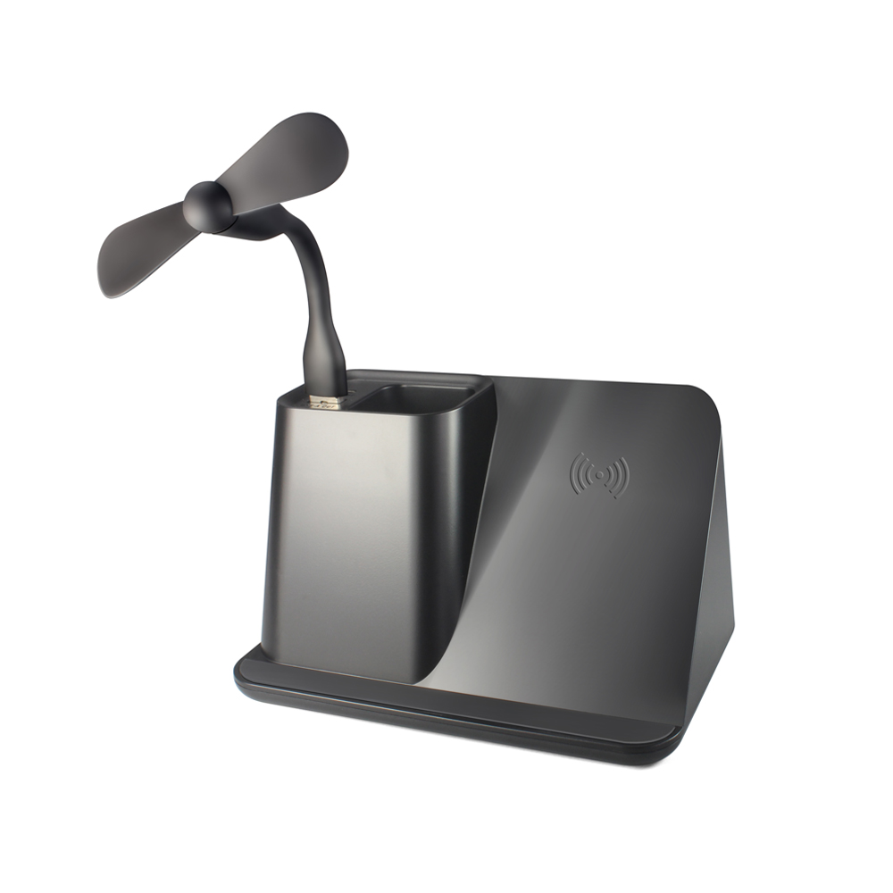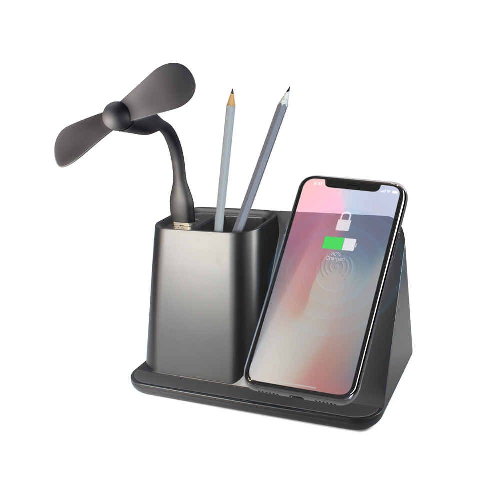 Органайзер Mercury – выгодный и эффективный способ продвижения. Со 100% гарантией, такой подарок найдет себе место на рабочем столе или в домашней обстановке. В душные дни портавиный вентилятор добавит свежести, а со встроенной беспроводной зарядкой вы всегда будете на связи. Логотип вашего бренда будет эффектно напоминать о себе каждый день благодаря подсветке, которая видна после гравировки. Беспроводная зарядка 5W. USB и USB Type С выходы (вход: 5V/2A, выход: 5V/2A 5W). Комлектация: капель Type-C, инструкция.