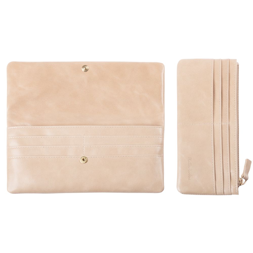 Кошелек имеет съемную внутреннюю вставку. На ней расположены карманы для карт и отделение на молнии.