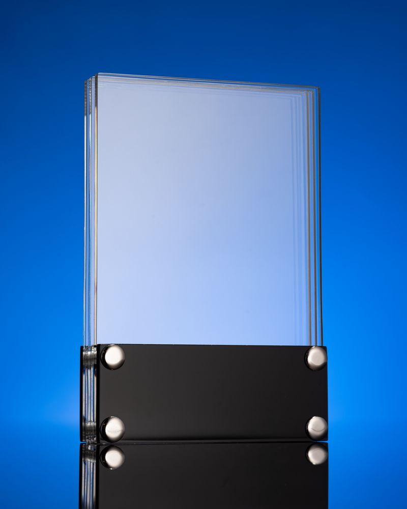 Придать награде законченный вид поможет шильд с гравировкой на основании.Трехслойная награда из акрила с креплением на 4 винтах. Толщина прозрачных панелей - 4 мм.