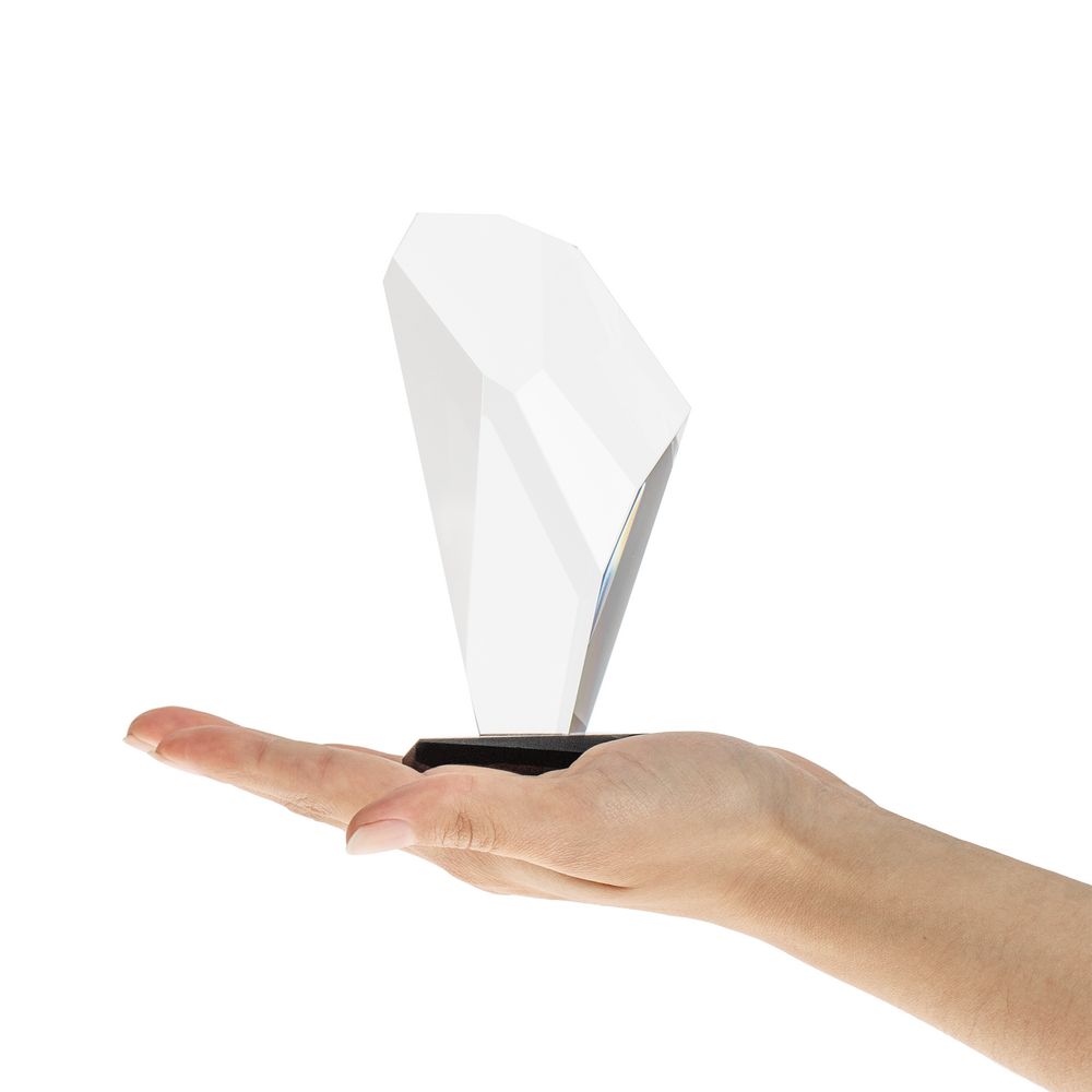 Эта стела-кристалл с легкостью поместится на ладони и подарит бурю положительных эмоций при награждении! Оригинальные стелы Cristallino напоминают эстетичные обломки настоящих кристаллов или минеральных камней, притягательных в своей уникальности и естественной простоте. Благодаря материалу — премиальному стеклу К9 — и особой технике окрашивания рождается оптический эффект: свет преломляется сквозь цветные грани, делая всю награду живой и яркой.