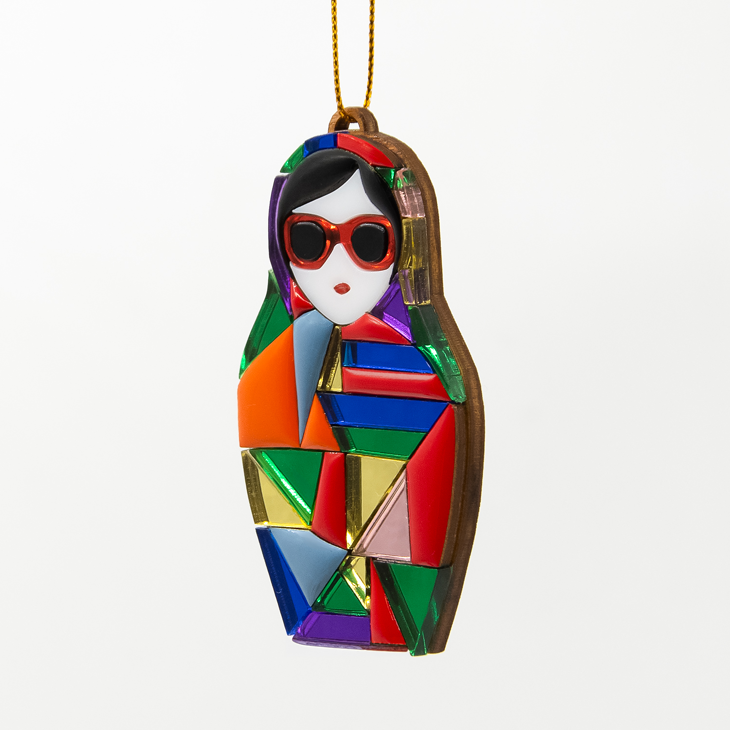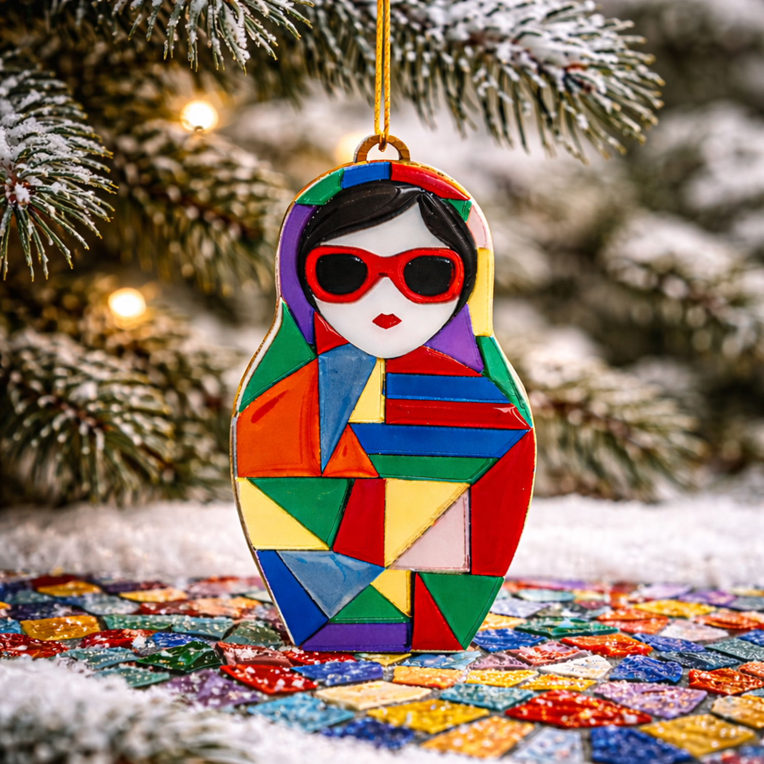 Ёлочная игрушка "Матрёшка с мозаикой" - новогоднее украшение из коллекции "Русские сезоны", сделанное вручную российскими мастерами.