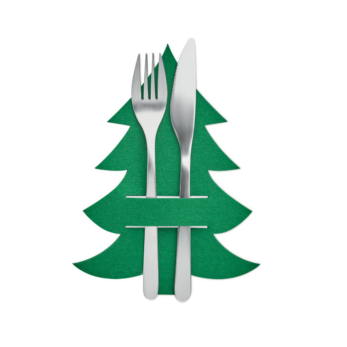 Набор из 4 фетровых (RPET) салфеток для столовых приборов в форме новогодней елки. Упакован в крафт-коробку