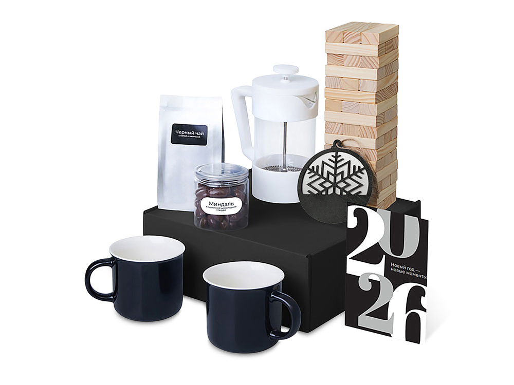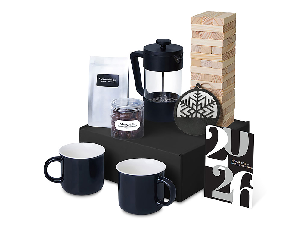 Набор Re:Together — о моментах, которые хочется разделить с близкими. Заварите чай с травами во френчпрессе, разлейте по кружкам и насладитесь временем с теми, кто дорог. Побалуйте себя сладким миндалём в глазури, проведите время за весёлой игрой и душевными разговорами. Маленькая подвеска на ёлку станет символом этих мгновений, напоминая о важности совместного времени и тёплых воспоминаний.