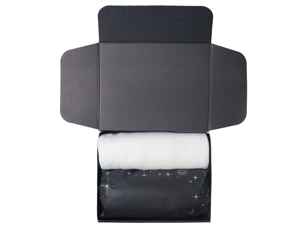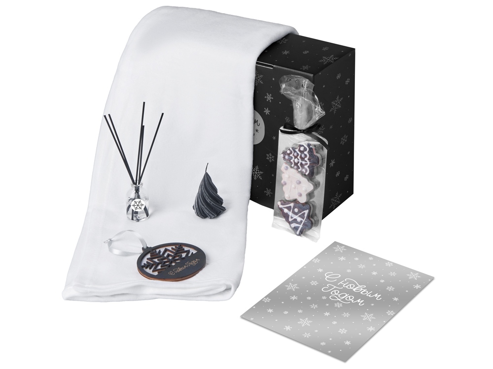 нетканый материал, плед - флис 100% полиэстер, подвеска - березвовая фанера, открытка - бумага, мешок - нетканый материал (спанбонд)