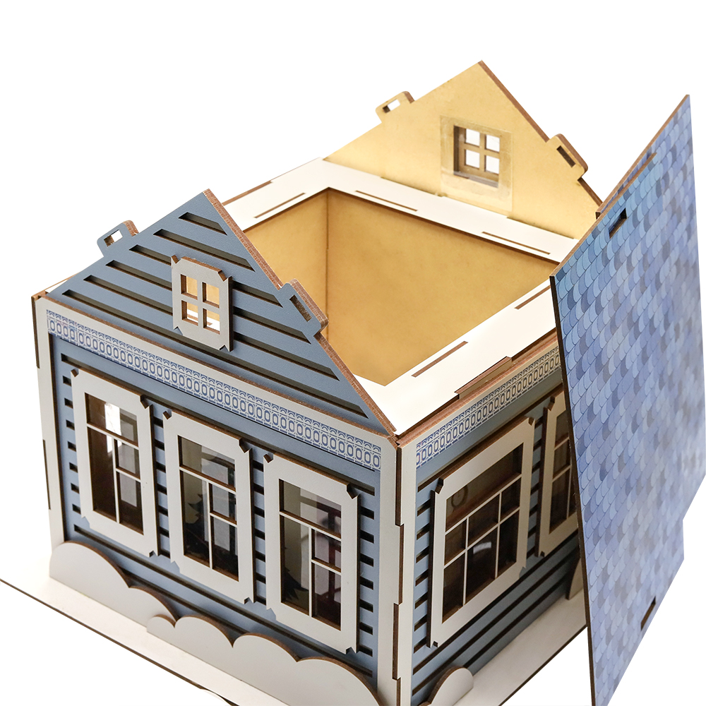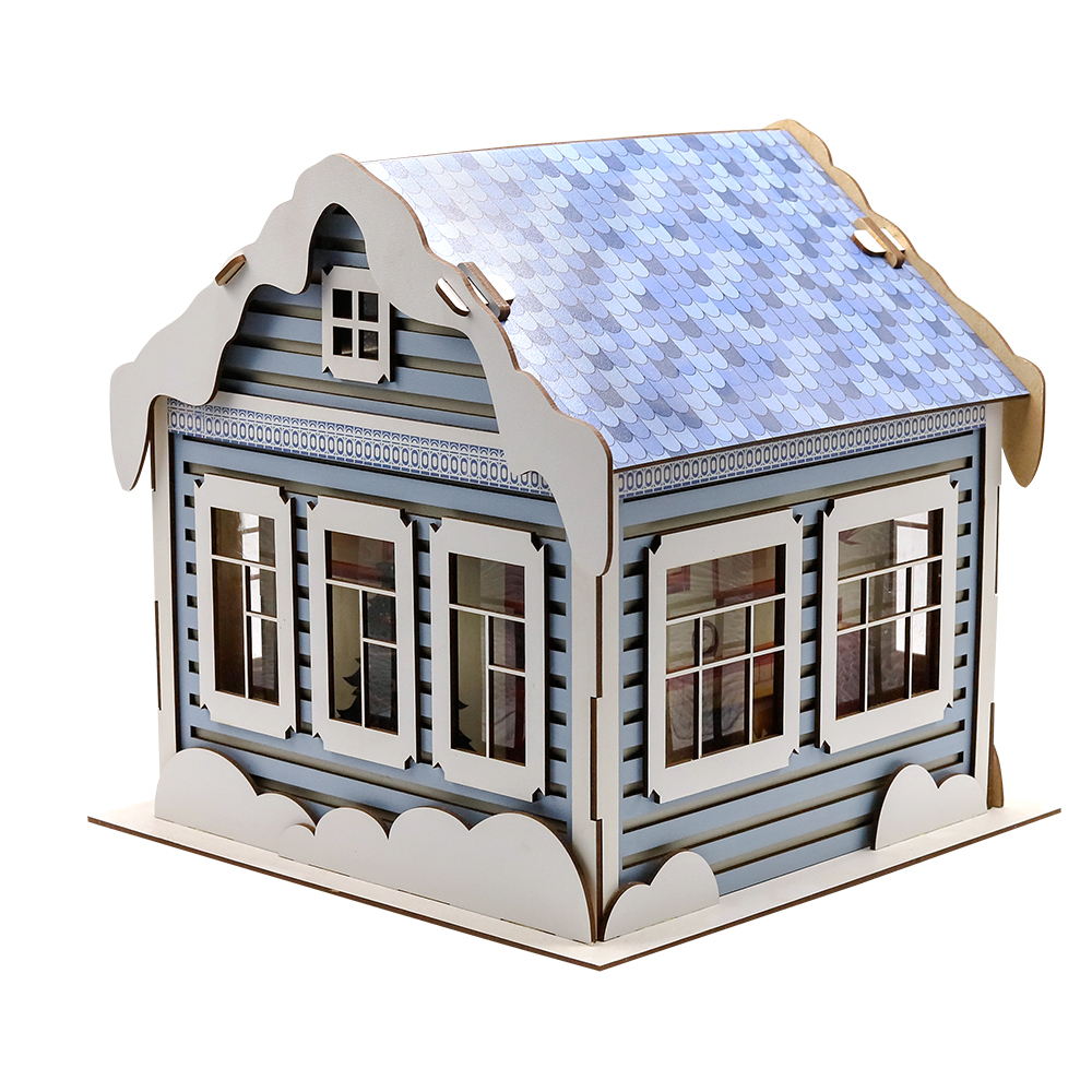 Новогодняя упаковка "Новогодний дом" — это деревянная коробка голубого полуматового цвета, выполненная в форме уютного зимнего домика. Её праздничный дизайн и мягкий цвет создают атмосферу тепла и волшебства, идеально подходя для хранения подарков или сладостей. Элегантное оформление добавляет уют и праздничное настроение в новогодние праздники.