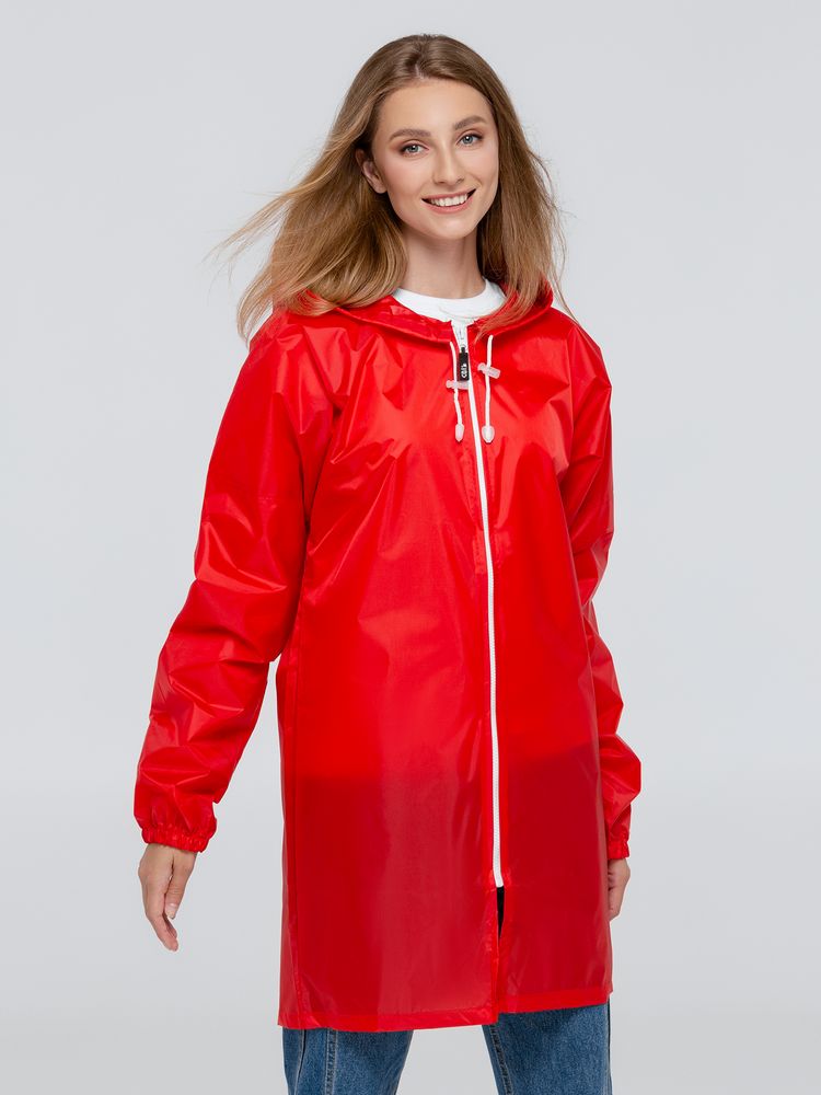 Плащ-дождевик из ткани таффета на молнии с капюшоном. Складывается в мешочек — удобно брать с собой.