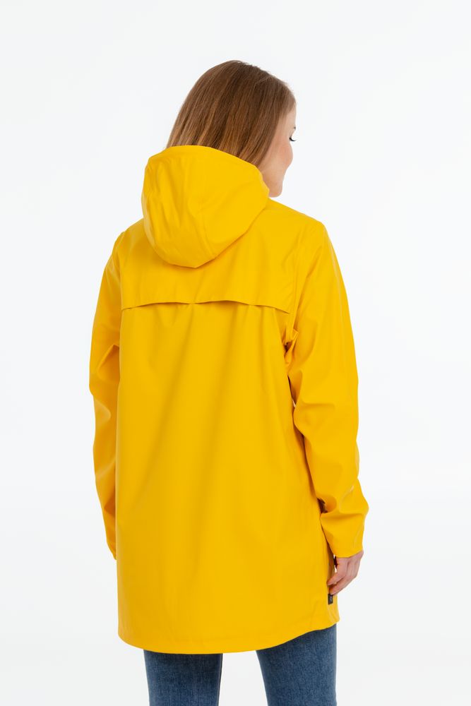 Стильный и практичный женский дождевик на кнопках из матового водонепроницаемого и ветрозащитного материала. Благодаря сварке ультразвуком швы абсолютно водостойкие. Карманы защищены от дождя накладными клапанами.