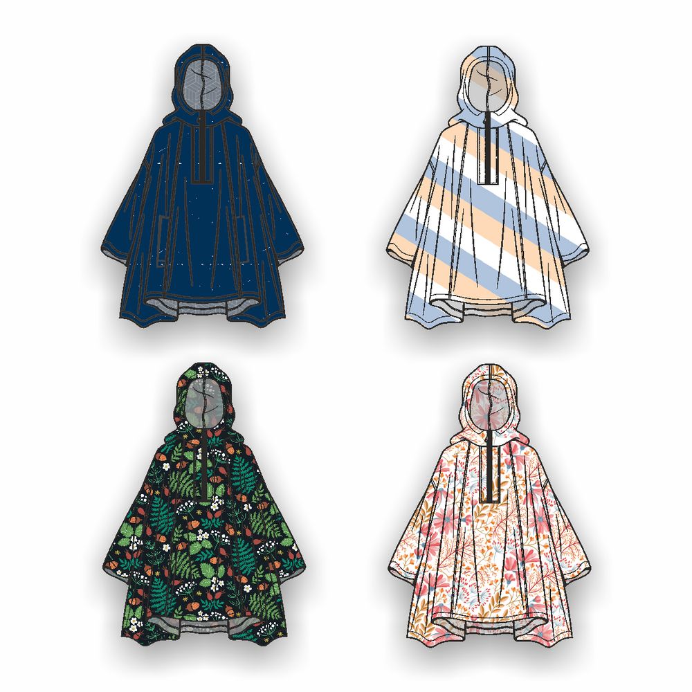 Легкий городской дождевик-пончо с регулируемым капюшоном из влагоустойчивого материала подходит для защиты в непогоду, свободно одевается поверх одежды и небольшого рюкзака.