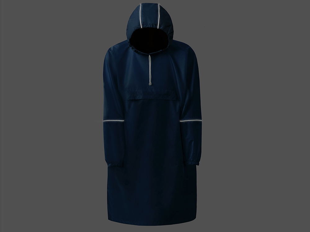 Дождевик - пончо прямого силуэта. Нагрудный карман плаща закрывается на молнию, которая дополнительно защищена клапаном, а еще в него можно полностью убрать дождевик. На дне кармана — ручка-петелька, которая в сложенном виде может использоваться для подвешивания.
