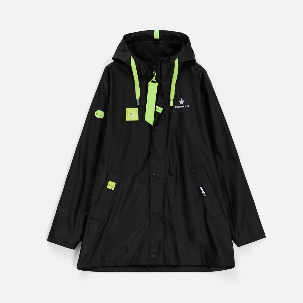Парка с капюшоном из полиэстера с полиуретановым непромокаемым покрытием.