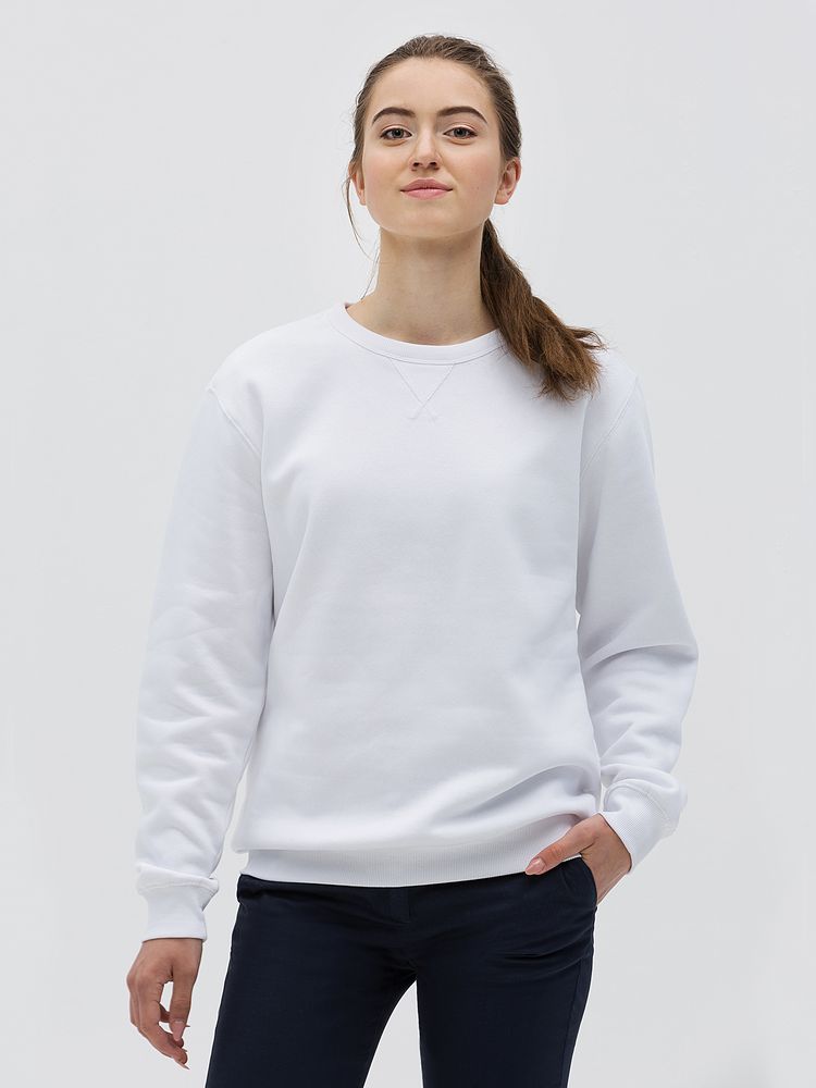 Утепленная толстовка унисекс с круглым вырезом и декоративной треугольной вставкой. Лейбл производителя в боковом шве изнутри, в шве горловины — только бирка с размером, что позволяет вам нанести свой логотип.