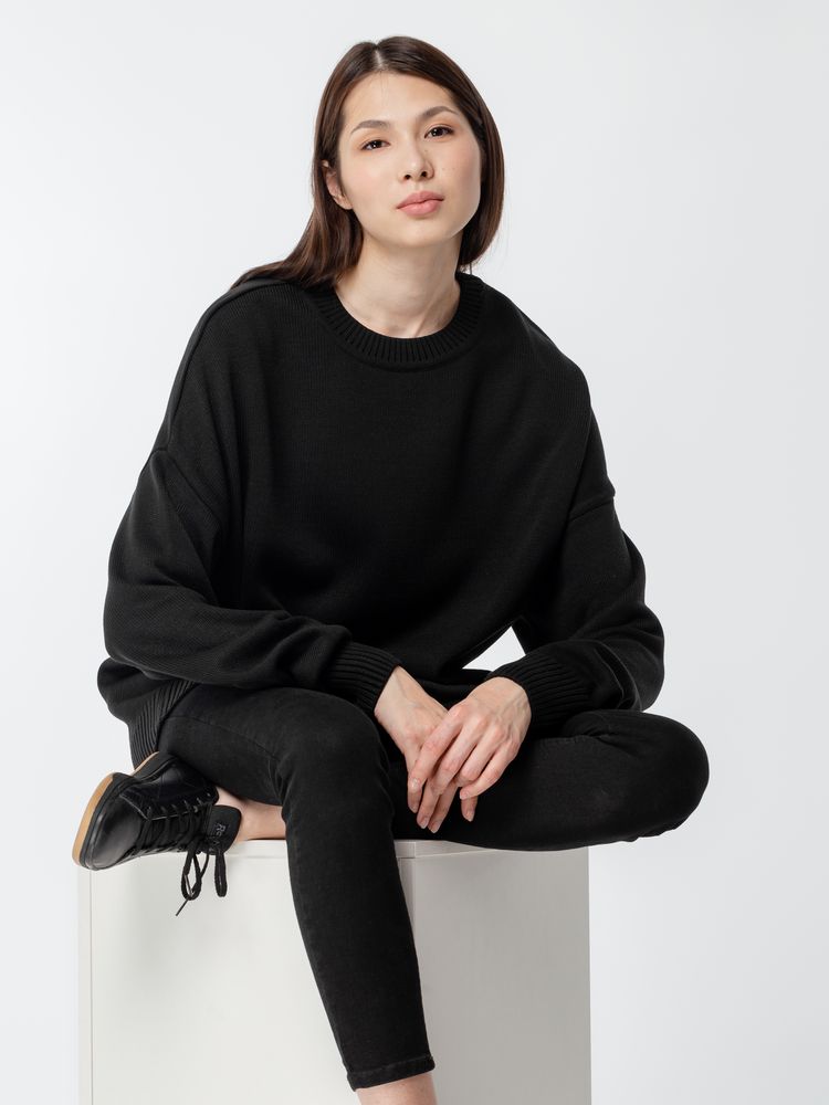 Модное прочтение базовой модели джемпера на стыке классики и стритвира — уверенное заявление в пользу комфорта и эстетики. Удобная горловина на резинке, сужающиеся к низу рукава и спущенное плечо делают оверсайз модель Stated универсальной в плане стиля: сочетая джемпер с более спокойной по цветам и фасону базой, легко создать расслабленный и трендовый силуэт.