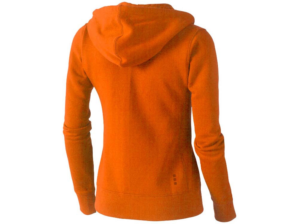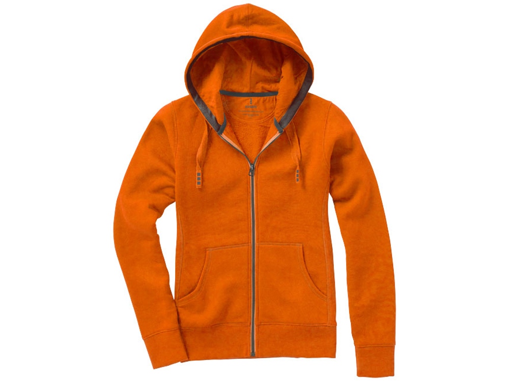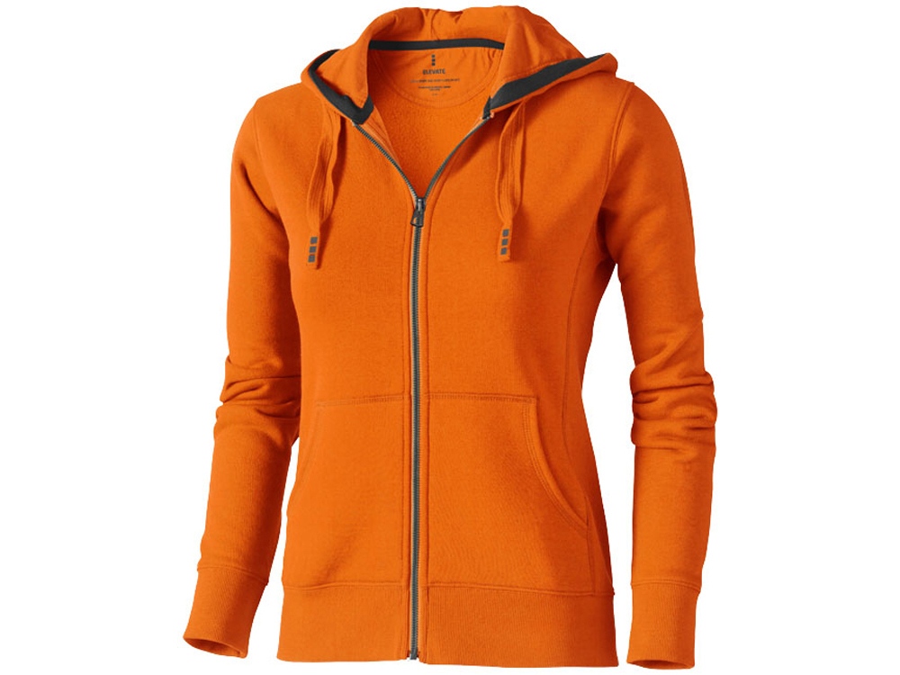 Женский свитер Arora с капюшоном и застежкой-молнией на всю длину. резинка 2х2 на боковых вставках, поясе и манжетах. Карман кенгуру. Мужская и женская модели с завязками на капюшоне. Подкладка внутри капюшона. Подкладка на полумесяце. Атласная лента внутри горловины. Контрастный цвет внутри капюшона. Принт лого сзади в тон изделия. Серебристые люверсы с лого. Трикотаж: 80% хлопок и 20% полиэстер, чесаная внутренняя сторона. 300 г/м².