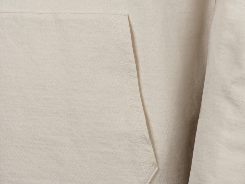 Классическая толстовка для повседневного использования с карманом-кенгуру и капюшоном. Сделана из натурального хлопка без применения красителей. Подкладка без начеса (french terry). Манжеты и низ выполнены из рибаны 2х2. Капюшон регулируется широкими шнурками.