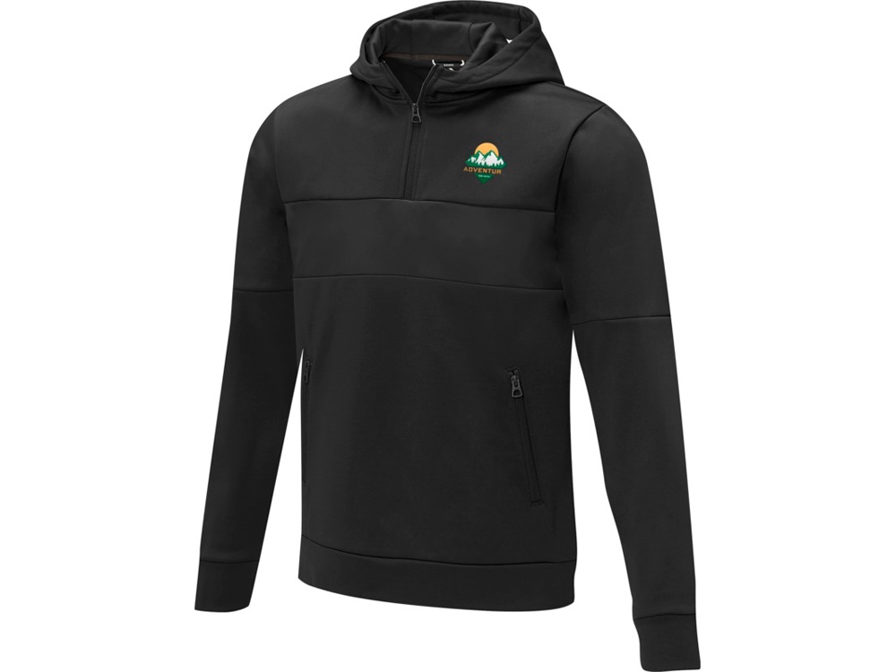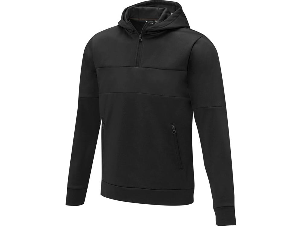 Молния на четверть длины. Модель анорак. Передние карманы с застежкой-молнией. Петля для подвешивания с фирменной символикой. Бегунки застежки-молнии с простой фиксацией. Главный лейбл нанесен методом термоприклеивания, удобным для размещения рисунков на ткани.