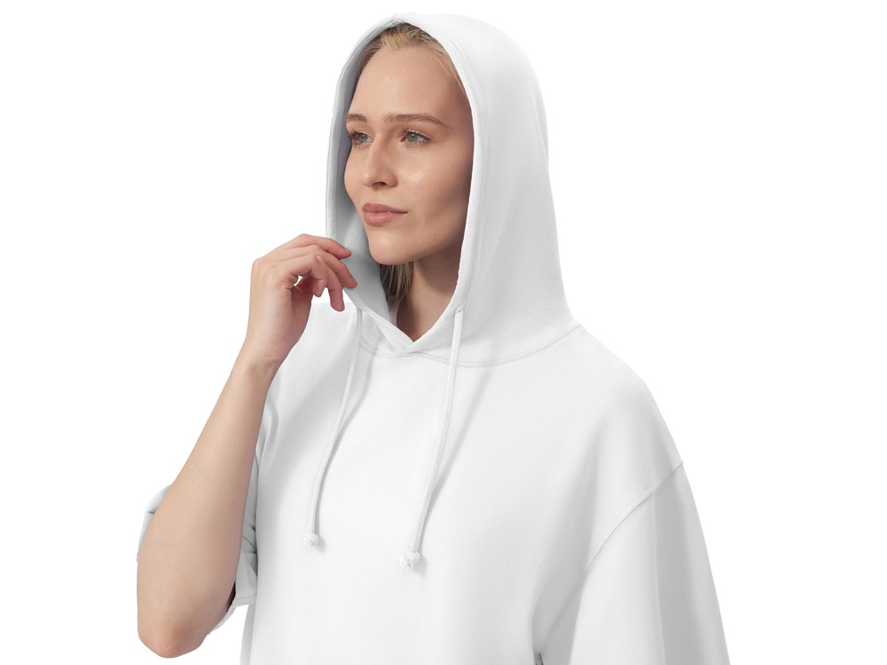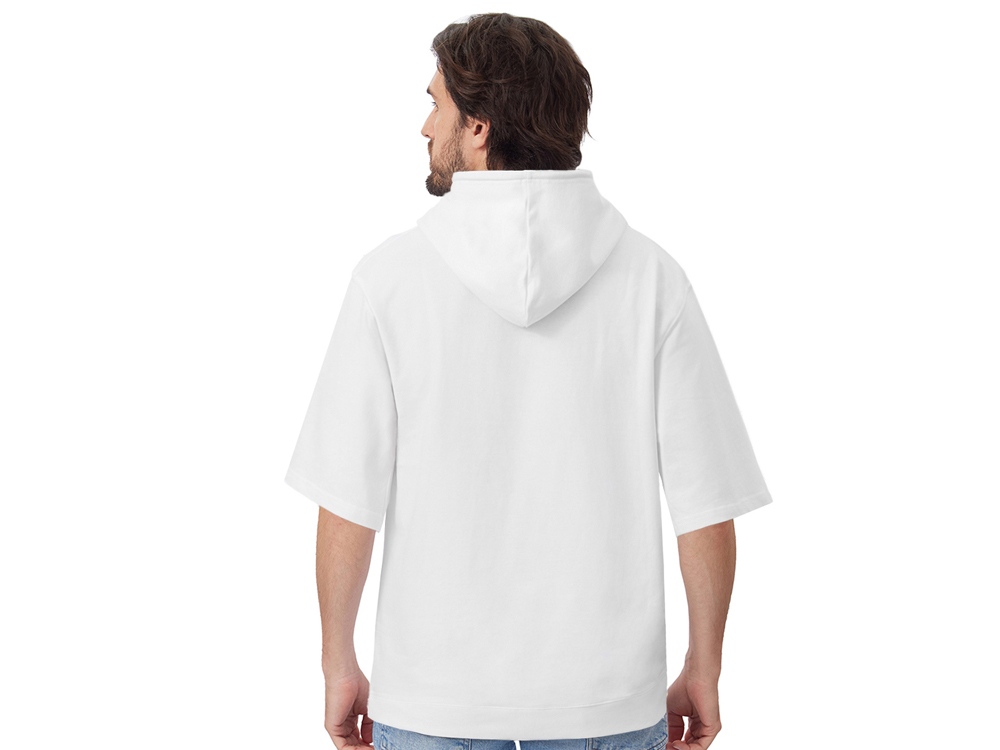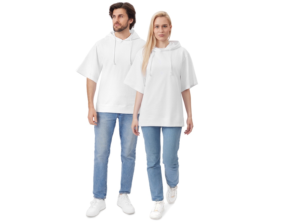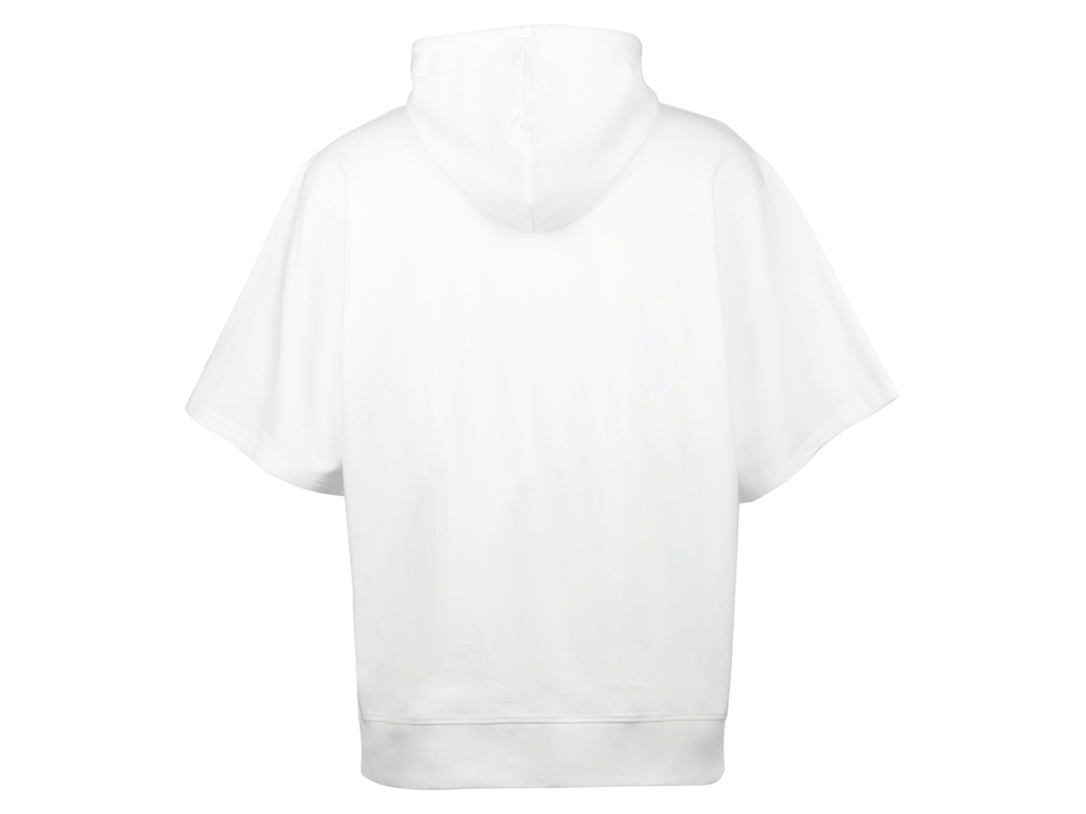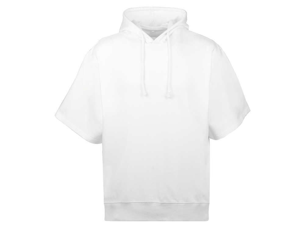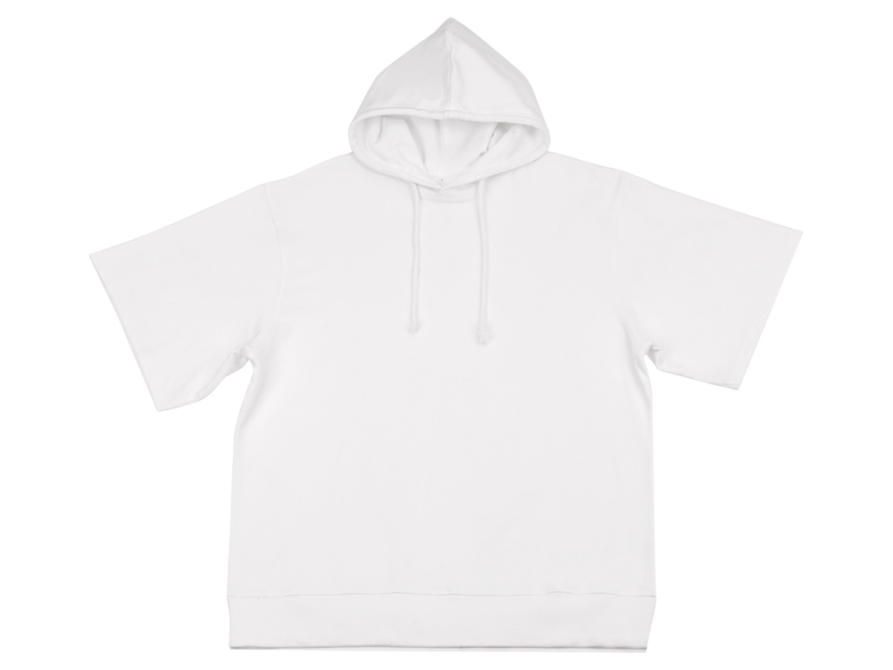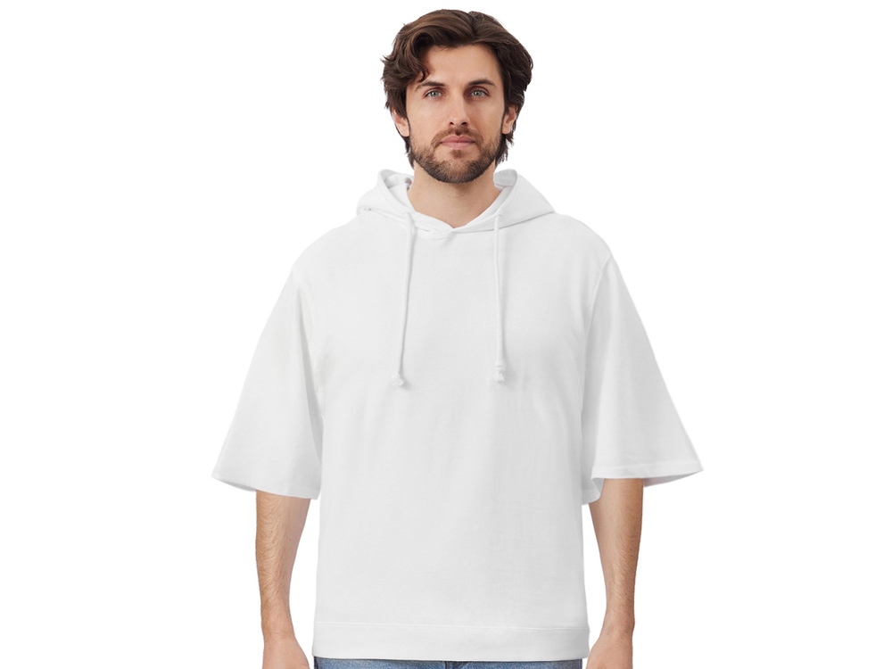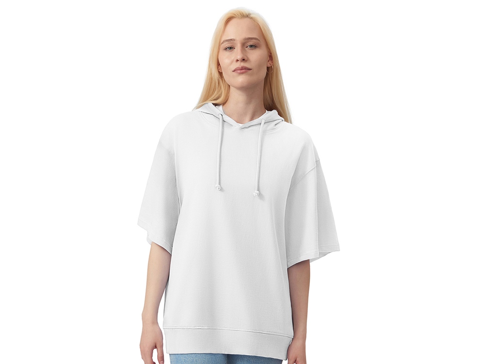 Худи с коротким рукавом выполнено из хлопкового френч терри с петельками на изнаночной стороне. Подкладка капюшона выполнена из основного полотна для объемной посадки. Модель комфортной и актуальной посадки оверсайз отлично подходит для обычной жизни и в качестве промо мерча.