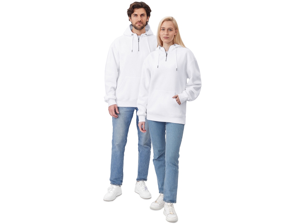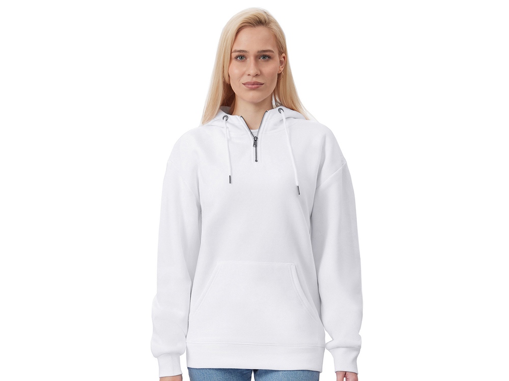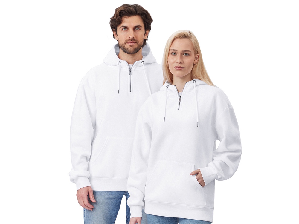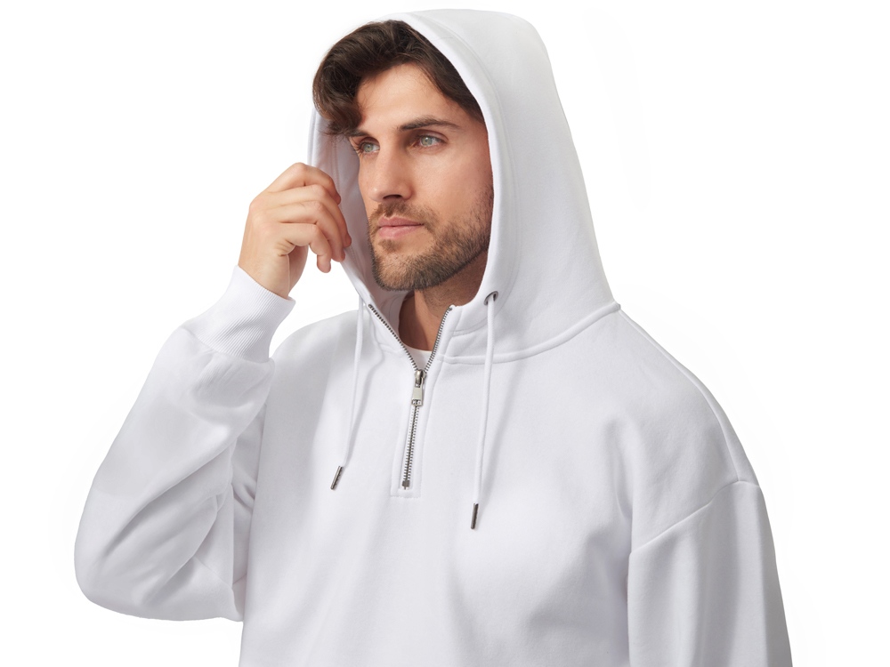 Худи с капюшоном ворот на молнии. Шнур в капюшоне с металлическими наконечниками. Отделка горловины спинки внутри тесьмой, Риб 2х2 по низу изделия и манжетам. Удобный карман кенгуру.