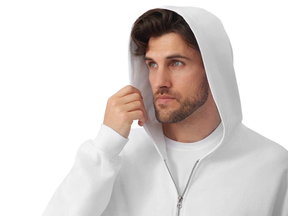 Толстовка на молнии с капюшоном. Риб 2х2 по манжетам и низу изделия.