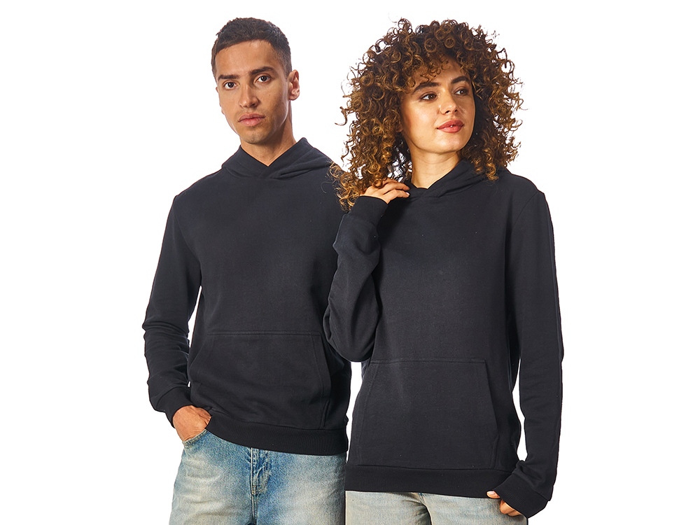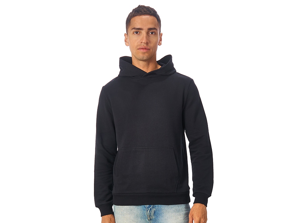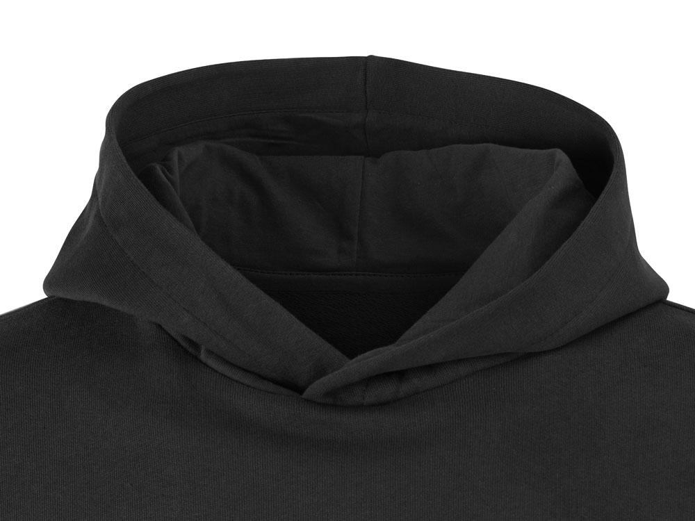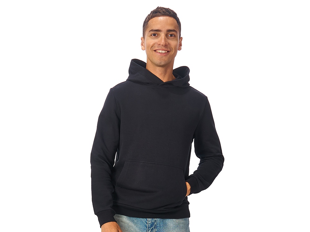 Толстовка с капюшоном (худи) из плотного хлопкового 3х ниточного футера. В капюшоне подкладка в тон, а горловина спинки дополнительно укреплена тесьмой с выделкой елочка. Капюшон без шнурков – ничего не отвлекает от вашего брендирования. Манжеты и низ изделия отделаны рибом 2х2. Глубокий комфортный карман кенгуру на полочке. Полотно из утяжеленного хлопкового футера внутри с петельками без начеса.